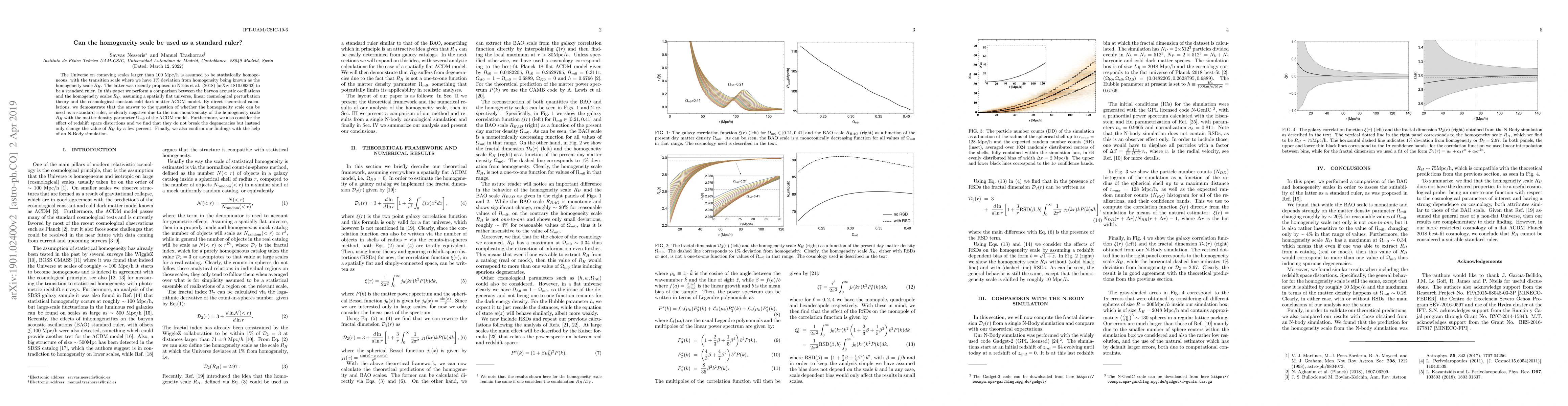 This paper investigates whether the homogeneity scale $R_H$ can serve as a standard ruler in cosmology. The study concludes that $R_H$ cannot be used as a standard ruler due to its non-monotonic dependence on the matter density parameter $\Omega_{m0}$ in the $\Lambda$CDM model. Redshift space distortions slightly modify $R_H$ but do not resolve its incompatibility as a standard ruler.