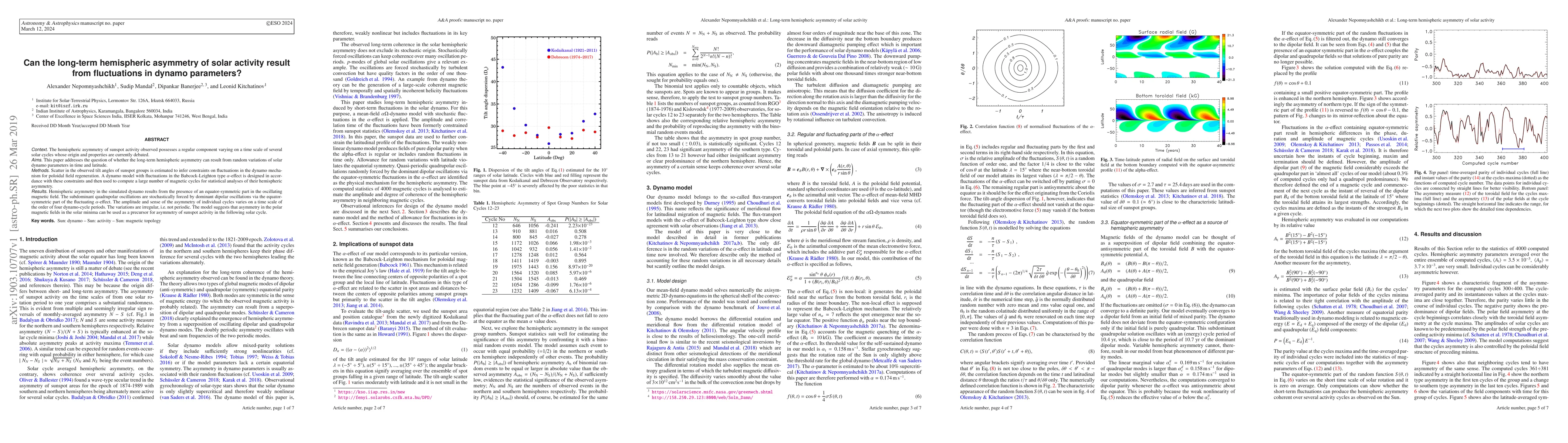 This paper investigates whether long-term hemispheric asymmetry in solar sunspot activity arises from fluctuations in solar dynamo parameters. The study finds that asymmetry results from stochastically forced quadrupolar oscillations driven by fluctuating $\alpha$-effects in the dynamo model.