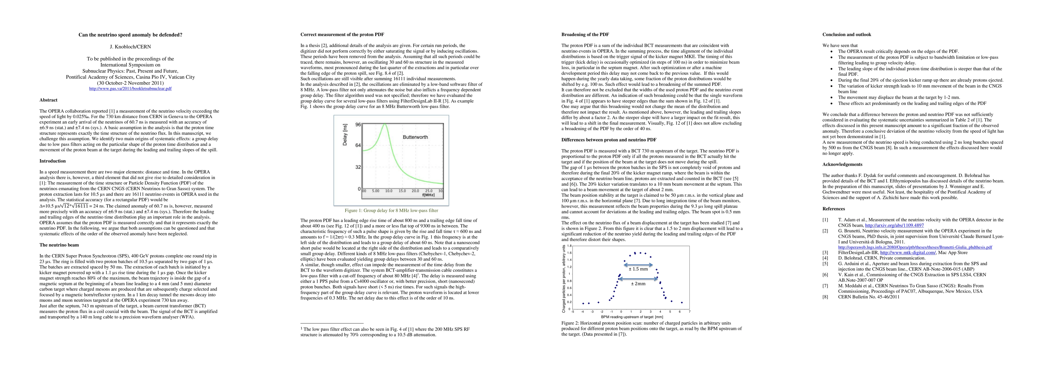 Researchers challenge the assumption that proton time structure represents neutrino flux timing, identifying two main sources of systematic error: group delay due to low-pass filters and beam movement at the target.