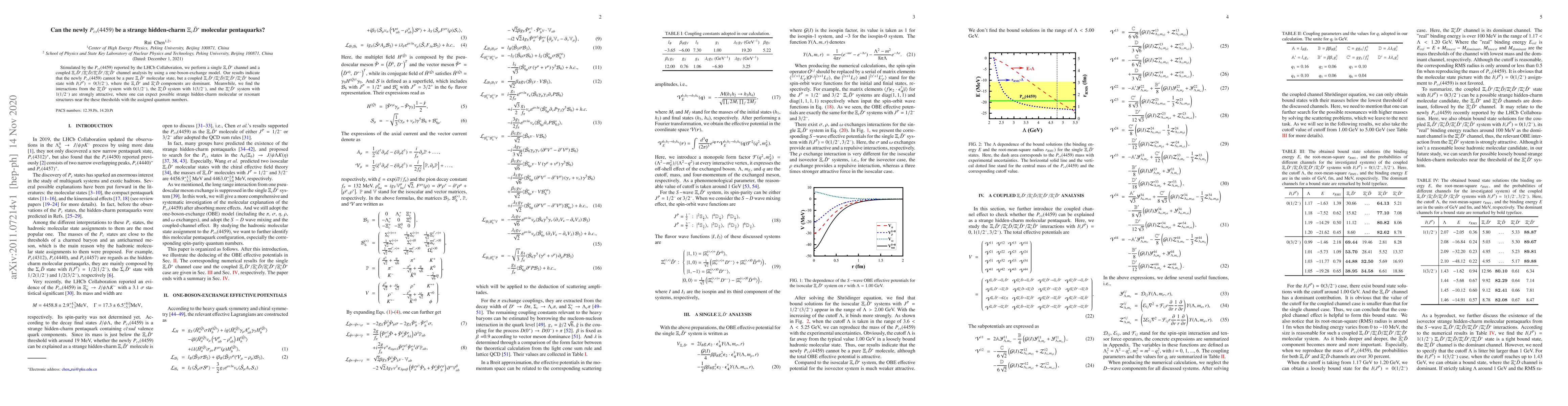 Stimulated by the $P_{cs}(4459)$ reported by the LHCb Collaboration, we perform a single $\Xi_c\bar{D}^*$ channel and a coupled $\Xi_c\bar{D}^*/\Xi_c^*\bar{D}/\Xi_c^{\prime}\bar{D}^*/\Xi_c^*\bar{D}^*$ channel analysis by using a one-boson-exchange model. Our results indicate that the newly $P_{cs}(4459)$ cannot be a pure $\Xi_c\bar{D}^*$ molecular state, but a coupled $\Xi_c\bar{D}^*/\Xi_c^*\bar{D}/\Xi_c^{\prime}\bar{D}^*/\Xi_c^*\bar{D}^*$ bound state with $I(J^P)=0(3/2^-)$, where the $\Xi_c\bar{D}^*$ and $\Xi_c^*\bar{D}$ components are dominant. Meanwhile, we find the interactions from the $\Xi_c^{\prime}\bar{D}^*$ system with $0(1/2^-)$, the $\Xi_c^{*}\bar{D}$ system with $1(3/2^-)$, and the $\Xi_c^{*}\bar{D}^*$ system with $1(1/2^-)$ are strongly attractive, where one can expect possible strange hidden-charm molecular or resonant structures near the these thresholds with the assigned quantum numbers.