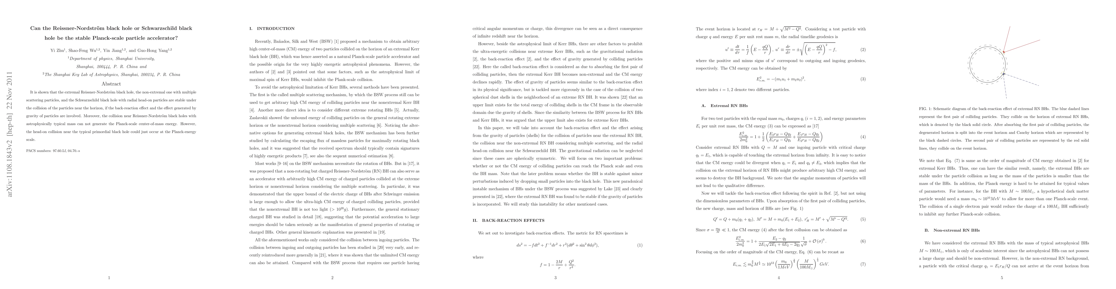 This paper demonstrates that while extremal Reissner-Nordström and Schwarzschild black holes can stabilize particle collisions near their horizons, typical astrophysical Reissner-Nordström black holes cannot achieve Planck-scale energies. In contrast, primordial black holes may enable such high-energy collisions.
