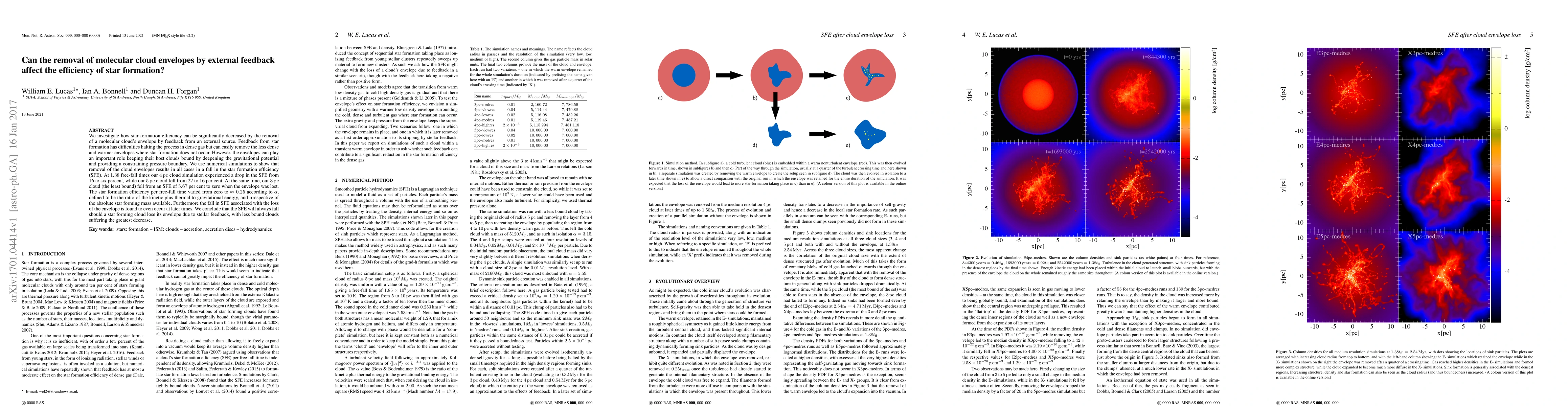 We investigate how star formation efficiency can be significantly decreased by the removal of a molecular cloud's envelope by feedback from an external source. Feedback from star formation has difficulties halting the process in dense gas but can easily remove the less dense and warmer envelopes where star formation does not occur. However, the envelopes can play an important role keeping their host clouds bound by deepening the gravitational potential and providing a constraining pressure boundary. We use numerical simulations to show that removal of the cloud envelopes results in all cases in a fall in the star formation efficiency (SFE). At 1.38 free-fall times our 4 pc cloud simulation experienced a drop in the SFE from 16 to six percent, while our 5 pc cloud fell from 27 to 16 per cent. At the same time, our 3 pc cloud (the least bound) fell from an SFE of 5.67 per cent to zero when the envelope was lost. The star formation efficiency per free-fall time varied from zero to $\approx$ 0.25 according to $\alpha$, defined to be the ratio of the kinetic plus thermal to gravitational energy, and irrespective of the absolute star forming mass available. Furthermore the fall in SFE associated with the loss of the envelope is found to even occur at later times. We conclude that the SFE will always fall should a star forming cloud lose its envelope due to stellar feedback, with less bound clouds suffering the greatest decrease.