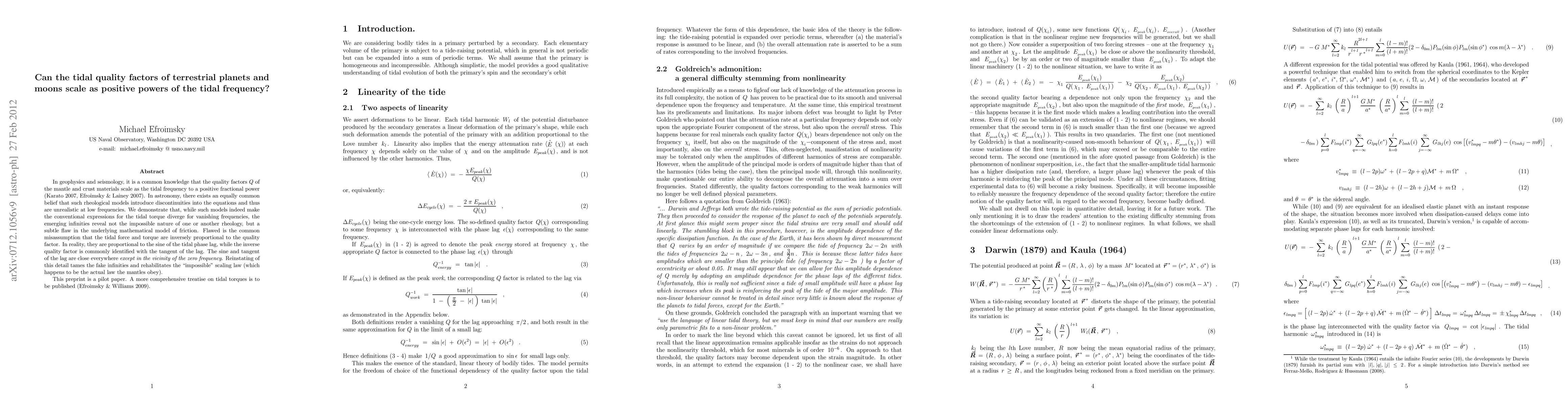In geophysics and seismology, it is a common knowledge that the quality factors Q of the mantle and crust materials scale as the tidal frequency to a positive fractional power (Karato 2007, Efroimsky and Lainey 2007). In astronomy, there exists an equally common belief that such rheological models introduce discontinuities into the equations and thus are unrealistic at low frequencies. We demonstrate that, while such models indeed make the conventional expressions for the tidal torque diverge for vanishing frequencies, the emerging infinities reveal not the impossible nature of one or another rheology, but a subtle flaw in the underlying mathematical model of friction. Flawed is the common misassumption that the tidal force and torque are inversely proportional to the quality factor. In reality, they are proportional to the sine of the tidal phase lag, while the inverse quality factor is commonly identified with the tangent of the lag. The sine and tangent of the lag are close everywhere {\it{except in the vicinity of the zero frequency}}. Reinstating of this detail tames the fake infinities and rehabilitates the "impossible" scaling law (which happens to be the actual law the mantles obey). This preprint is a pilot paper. A more comprehensive treatise on tidal torques is to be published (Efroimsky and Williams 2009).