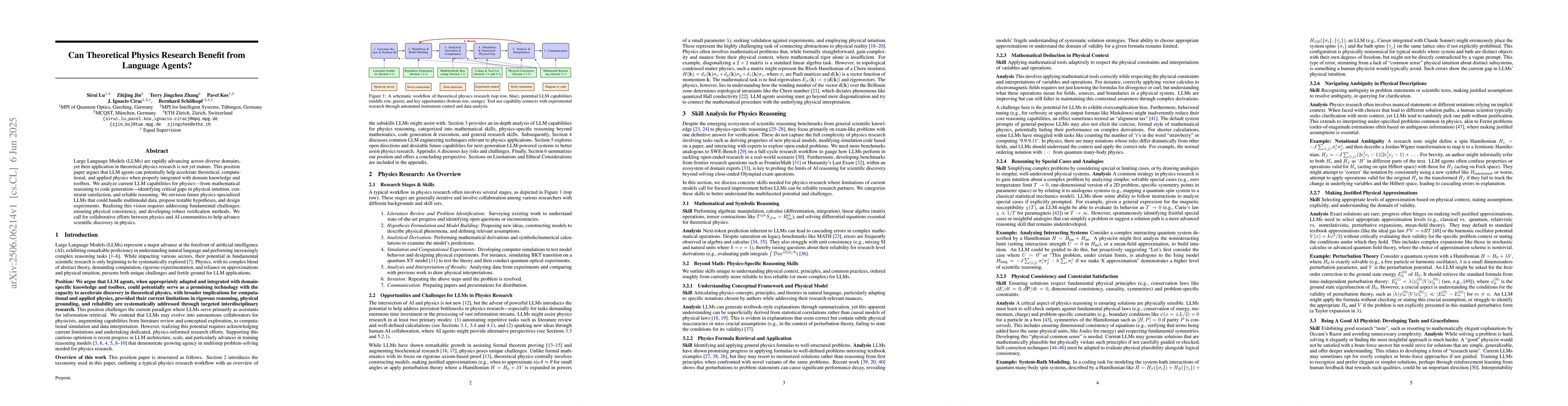 This position paper analyzes the potential of Large Language Models (LLMs) in theoretical physics research, identifying their current capabilities and critical gaps, and envisioning future physics-specialized LLMs.