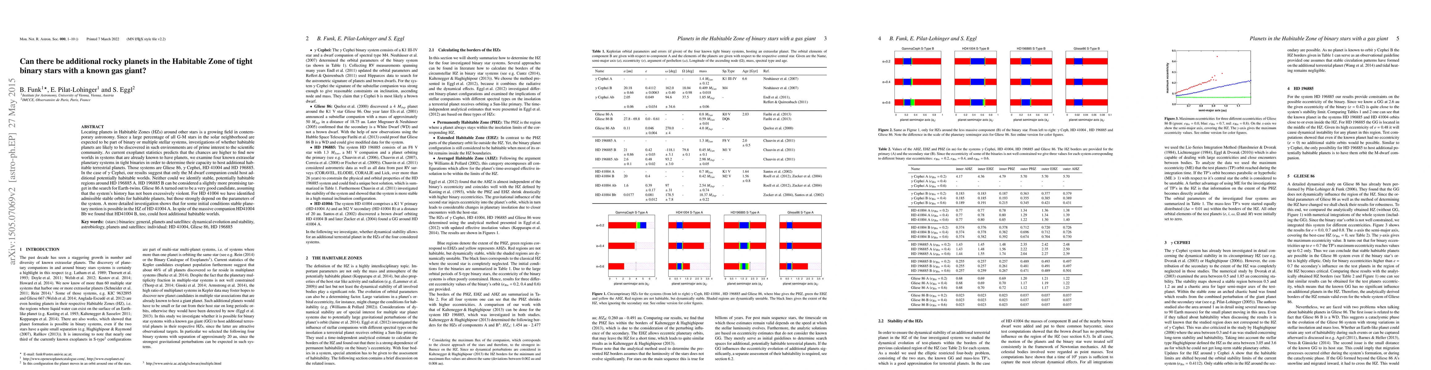 This paper investigates the potential for additional rocky planets in the habitable zones of tight binary star systems that already contain gas giants. The study finds that Gliese 86 A and HD 41004 B have promising regions for stable, habitable planets, while HD 196885 B shows slight potential, and gamma Cephei's M dwarf companion may host additional habitable worlds.