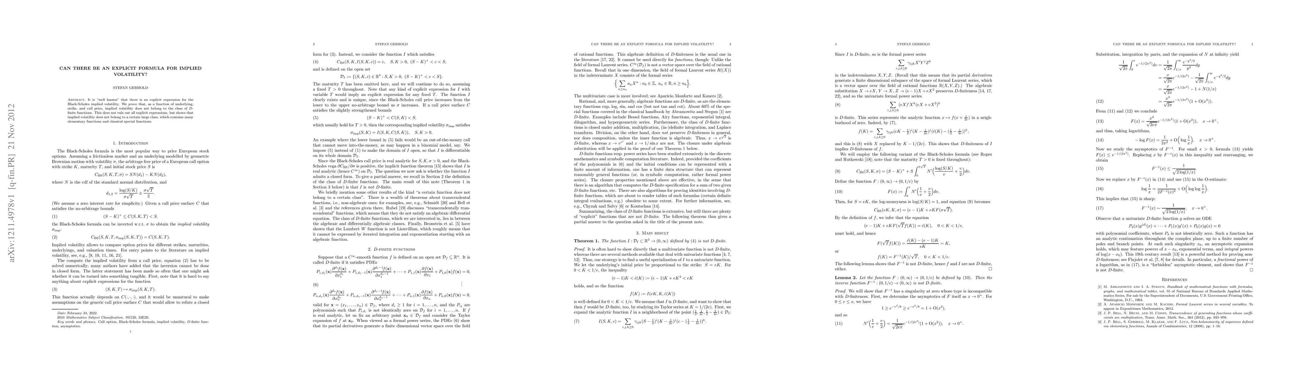 Summary: The paper proves that implied volatility under the Black-Scholes model cannot be expressed as a D-finite function, a class that includes many elementary and special functions, though it does not exclude all possible explicit expressions. This finding reinforces the absence of a simple explicit formula for implied volatility.