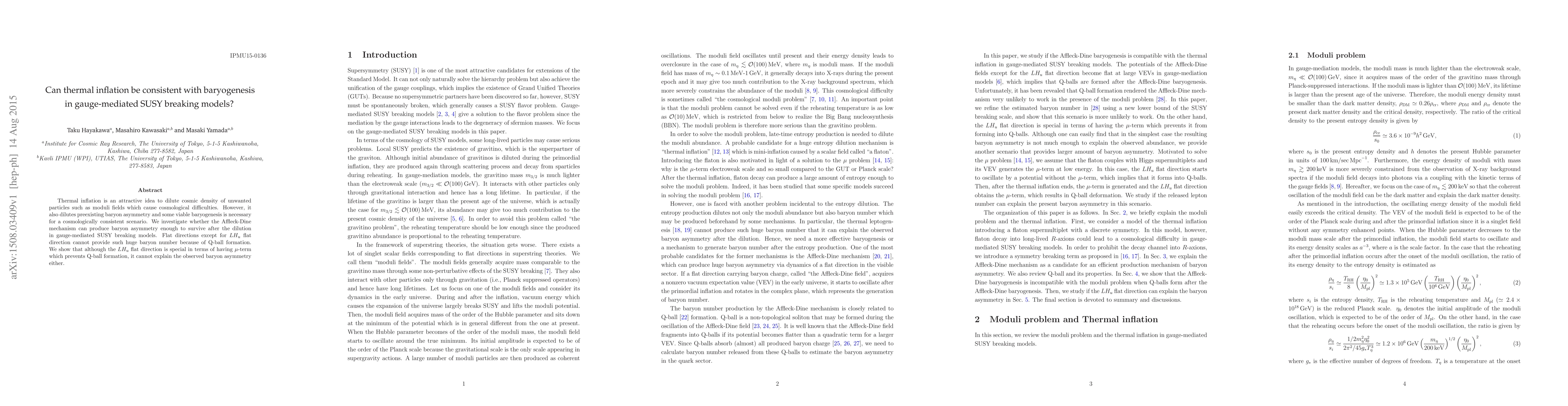 This paper explores whether thermal inflation can coexist with baryogenesis in gauge-mediated SUSY breaking models, finding that the Affleck-Dine mechanism fails to generate sufficient baryon asymmetry to survive dilution, particularly for flat directions except $LH_u$ due to Q-ball formation. The $LH_u$ flat direction, despite preventing Q-ball formation, also cannot account for the observed baryon asymmetry.