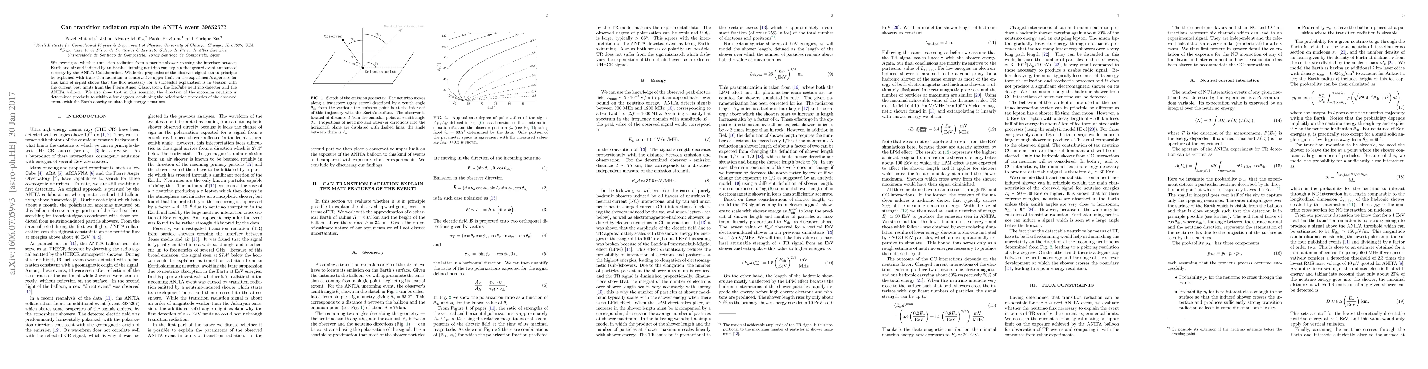 Researchers investigate whether transition radiation from an Earth-skimming neutrino can explain a recent upward event detected by the ANITA Collaboration, but find tension with current best limits from other detectors.