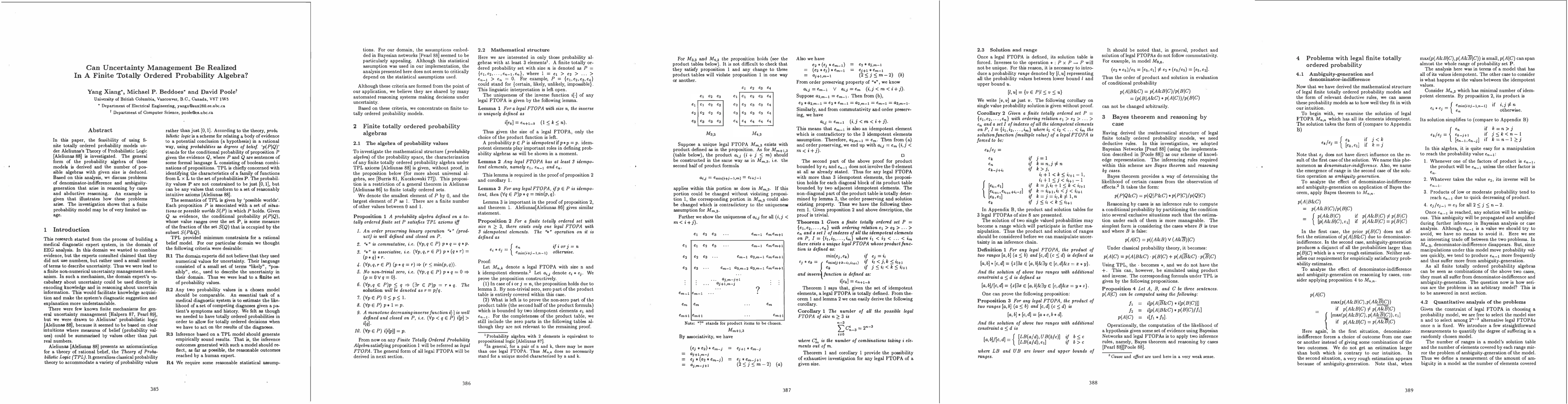 In this paper, the feasibility of using finite totally ordered probability models under Alelinnas's Theory of Probabilistic Logic [Aleliunas, 1988] is investigated. The general form of the probability algebra of these models is derived and the number of possible algebras with given size is deduced. Based on this analysis, we discuss problems of denominator-indifference and ambiguity-generation that arise in reasoning by cases and abductive reasoning. An example is given that illustrates how these problems arise. The investigation shows that a finite probability model may be of very limited usage.