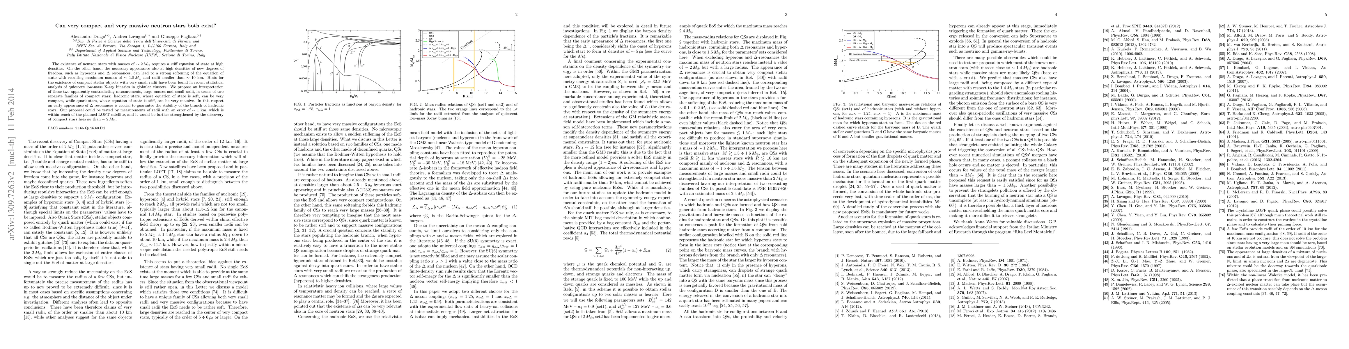 New research proposes that very compact (small radii) and massive neutron stars can coexist due to a proposed separation into two types of compact stars: hadronic stars with soft equations of state and quark stars with stiff equations of state.