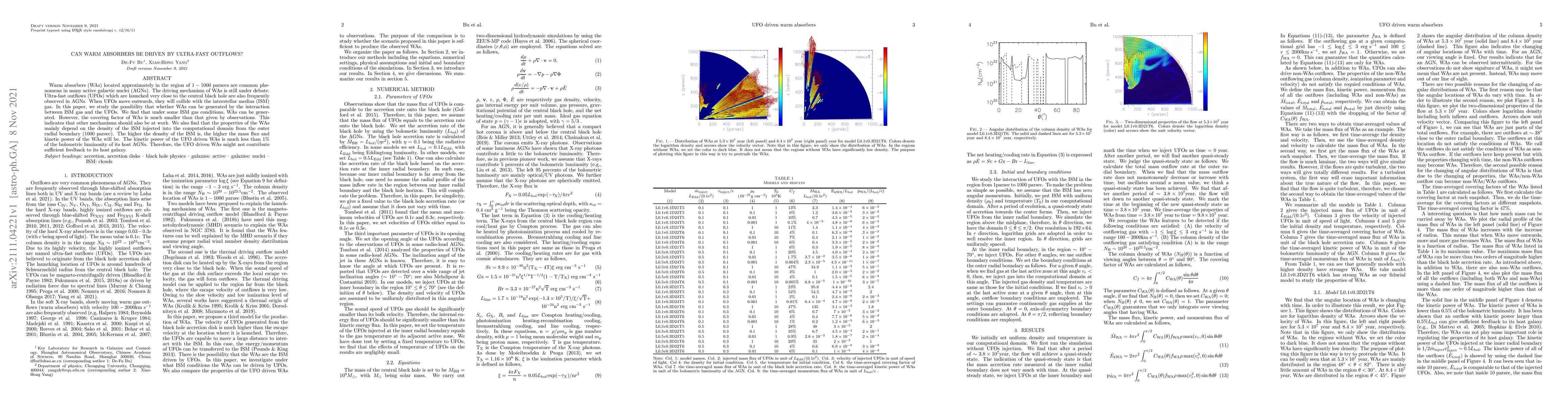 Research suggests that warm absorbers in active galactic nuclei can be driven by ultra-fast outflows, but the covering factor is smaller than observed, indicating other mechanisms may also be at play.