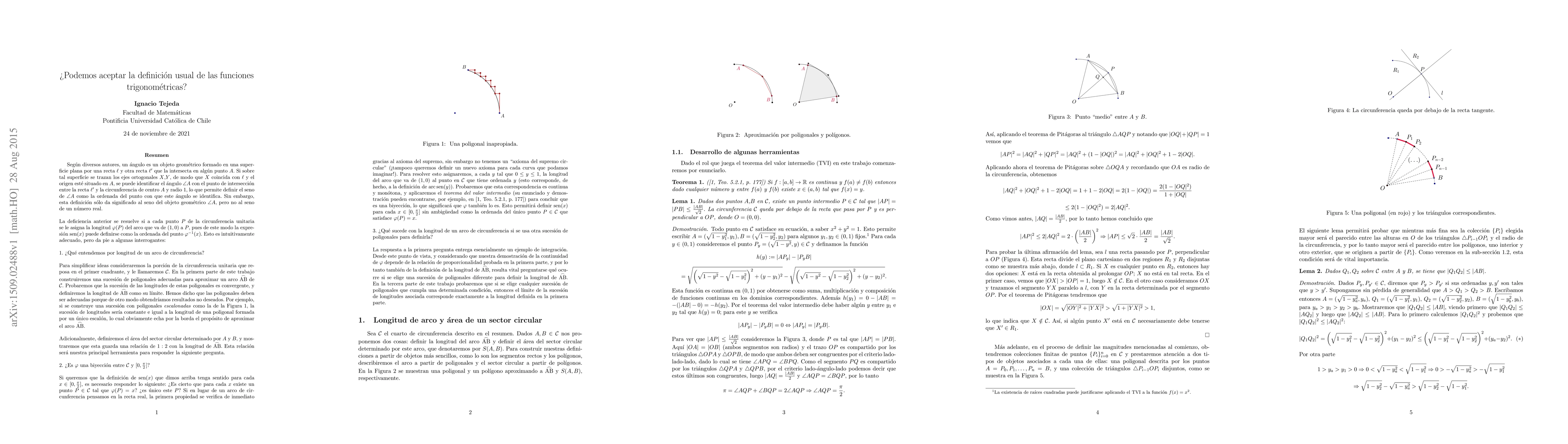 I review some facts which the usual sen(x) and cos(x) definitions are based on. The purpose of this paper is to show that this facts can be proved if we assume some basic ideas of elementary geometry.