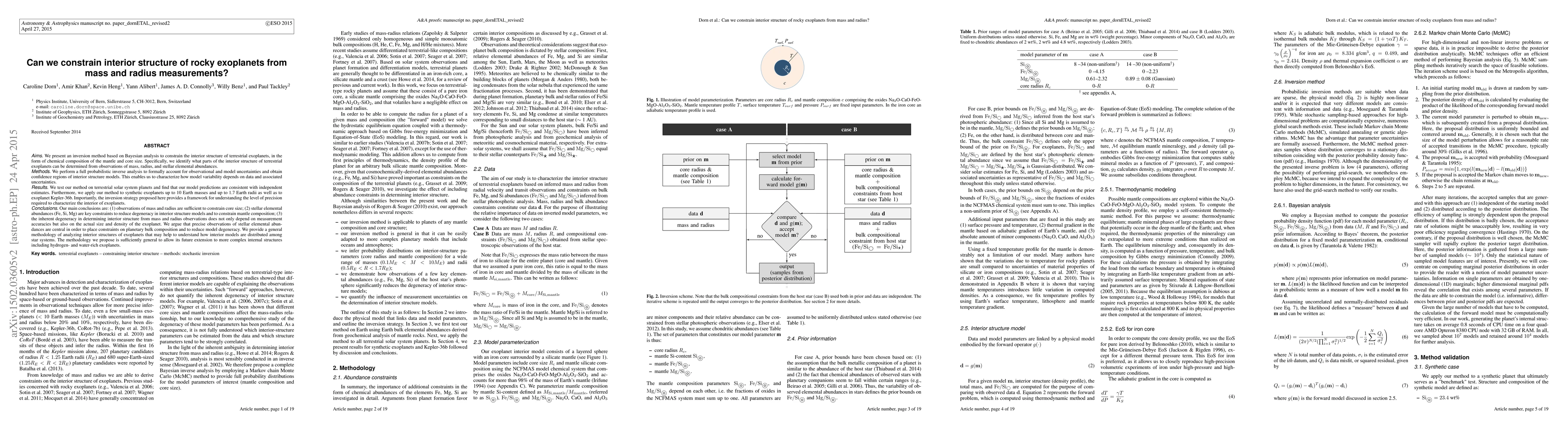 This paper proposes a Bayesian inversion method to determine the interior structure of terrestrial exoplanets from mass, radius, and stellar elemental abundances, finding that mass and radius observations can constrain core size, while stellar abundances are crucial for reducing model degeneracy and determining mantle composition. The method's effectiveness is demonstrated on solar system planets and synthetic exoplanets, highlighting the importance of precise stellar elemental abundances for accurate interior characterization.
