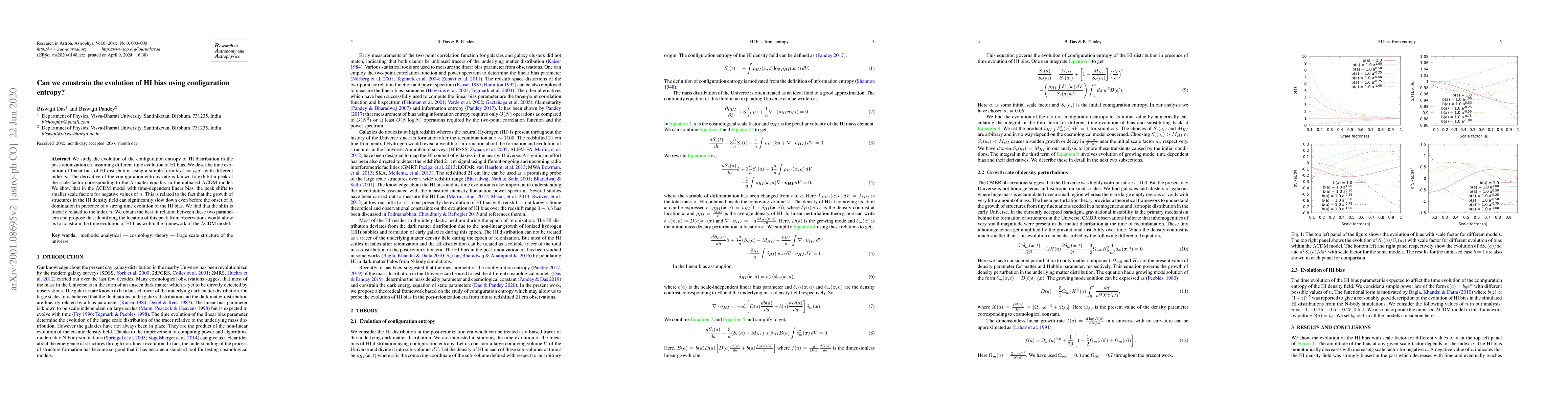 This paper investigates how the evolution of HI bias affects the configuration entropy of HI distribution in the post-reionization era, finding that the peak in the entropy rate shifts to smaller scale factors for negative bias evolution indices. The study proposes that observing this peak could help constrain the time evolution of HI bias within the $\Lambda$CDM model.
