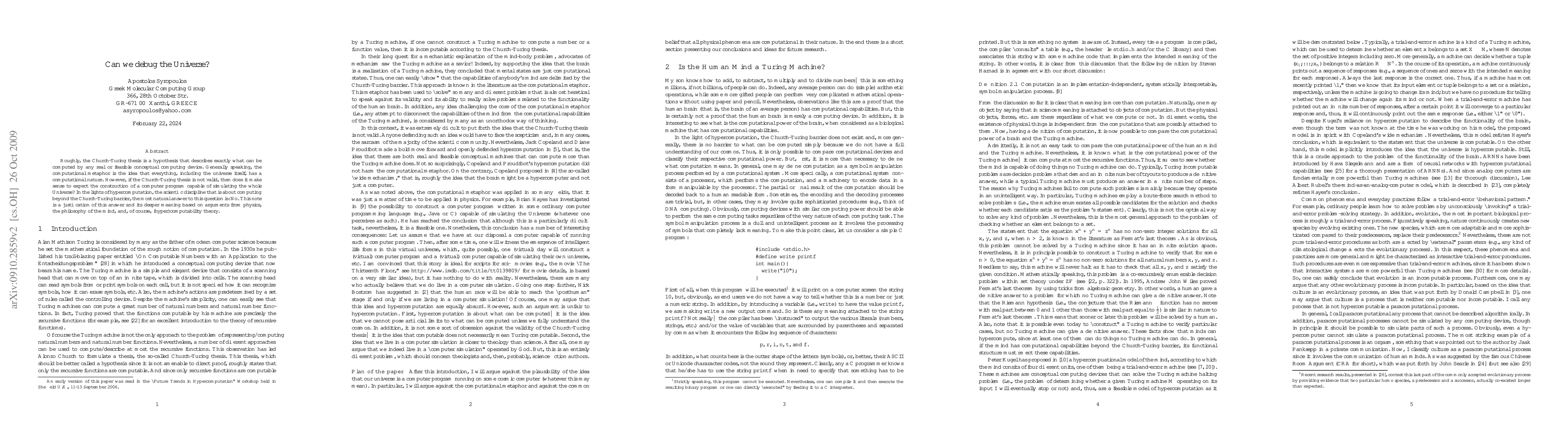 Roughly, the Church-Turing thesis is a hypothesis that describes exactly what can be computed by any real or feasible conceptual computing device. Generally speaking, the computational metaphor is the idea that everything, including the universe itself, has a computational nature. However, if the Church-Turing thesis is not valid, then does it make sense to expect the construction of a computer program capable of simulating the whole Universe? In the lights of hypercomputation, the scientific discipline that is about computing beyond the Church-Turing barrier, the most natural answer to this question is: No. This note is a justification of this answer and its deeper meaning based on arguments from physics, the philosophy of the mind, and, of course, (hyper)computability theory.