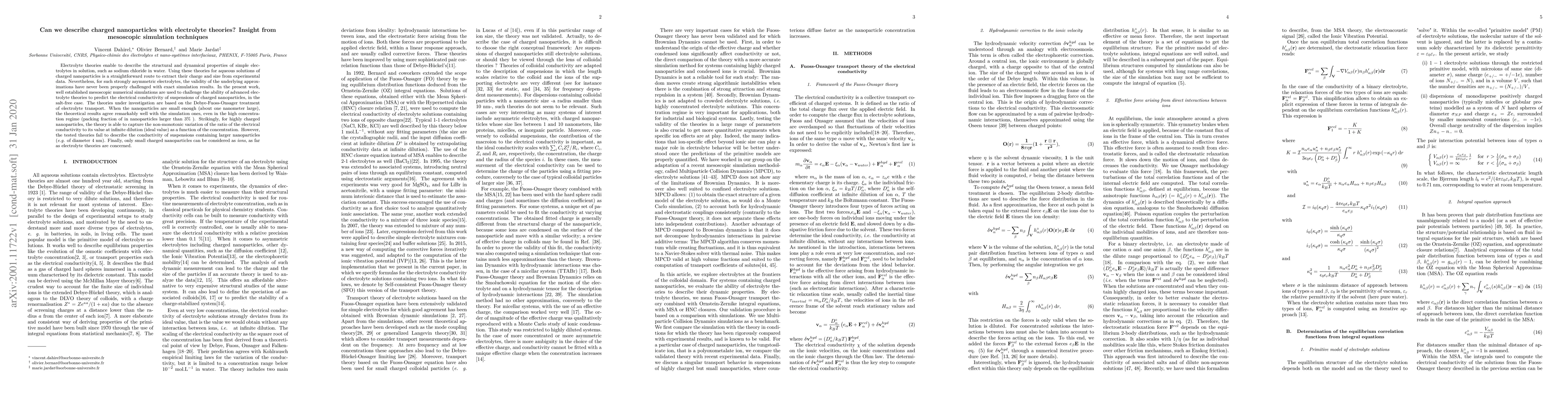 This paper investigates the applicability of electrolyte theories to describe charged nanoparticles using mesoscopic simulations. It finds that these theories accurately predict the electrical conductivity of small nanoparticles (about 1 nm) even at high concentrations, but fail for larger nanoparticles (e.g., 4 nm).