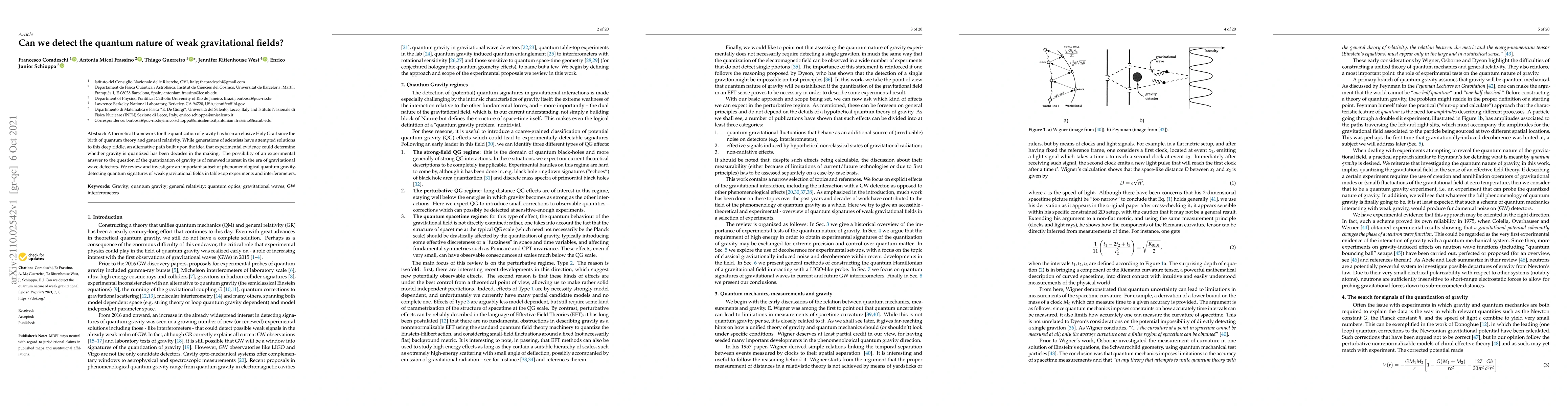 A theoretical framework for the quantization of gravity has been an elusive Holy Grail since the birth of quantum theory and general relativity. While generations of scientists have attempted solutions to this deep riddle, an alternative path built upon the idea that experimental evidence could determine whether gravity is quantized has been decades in the making. The possibility of an experimental answer to the question of the quantization of gravity is of renewed interest in the era of gravitational wave detectors. We review and investigate an important subset of phenomenological quantum gravity, detecting quantum signatures of weak gravitational fields in table-top experiments and interferometers.