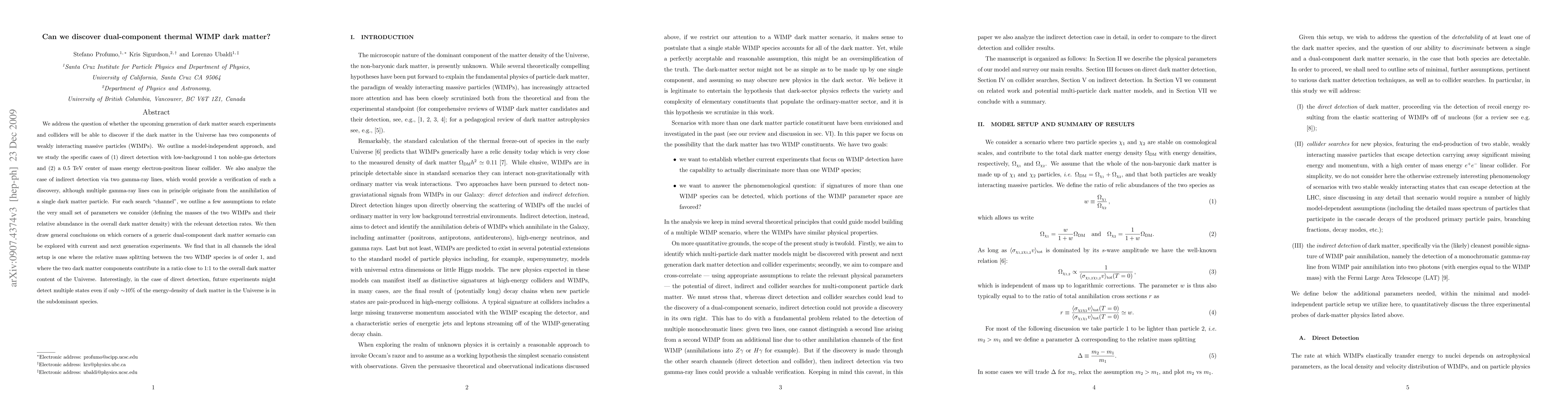 This paper investigates the potential for discovering dual-component thermal weakly interacting massive particle (WIMP) dark matter using upcoming dark matter experiments and colliders. It concludes that the best chance for detection lies in scenarios where the two WIMP species have similar masses and contribute equally to the dark matter density, with future experiments possibly identifying both components even if the subdominant species constitutes only about 10% of the total dark matter.