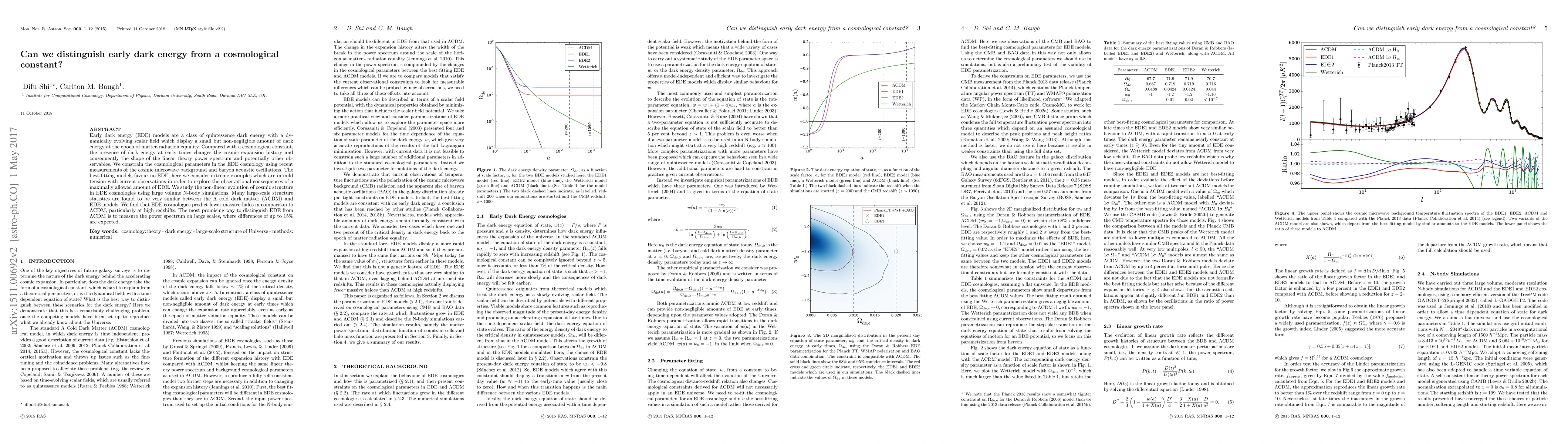 This paper investigates whether early dark energy (EDE) can be distinguished from a cosmological constant ($\Lambda$) by analyzing the cosmic expansion history and large-scale structure. While EDE models predict a small but non-negligible amount of dark energy at early times, current observations favor no EDE, but potential differences may still be detectable in large-scale structure power spectrum measurements, where up to 15% differences are expected.