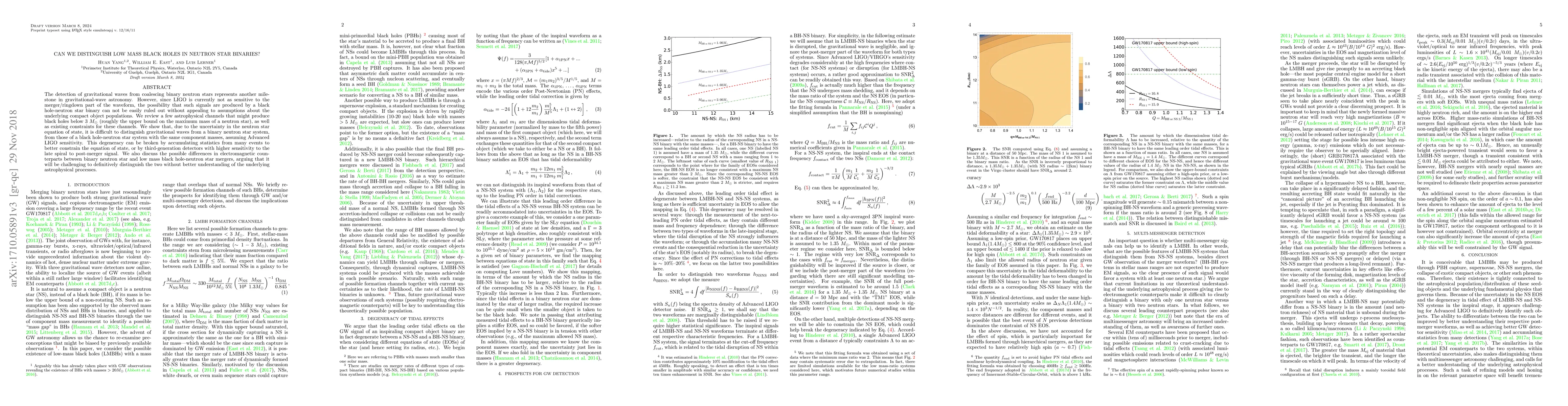 This paper discusses the challenge of distinguishing gravitational waves from low mass black hole-neutron star binaries due to the current limitations of LIGO's sensitivity and the uncertainty in neutron star equations of state. It suggests that future improvements in detector sensitivity and statistical accumulation may help resolve this issue.