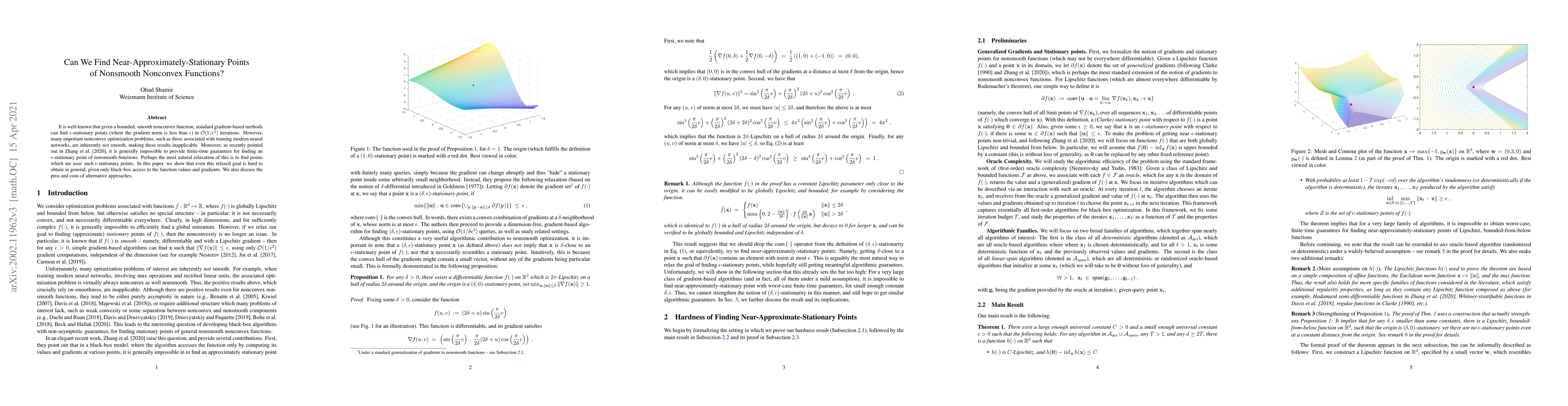 This paper explores the difficulty of finding near-approximately-stationary points for nonsmooth nonconvex functions, highlighting that traditional gradient-based methods fail due to the lack of smoothness. It concludes that even relaxed goals, such as finding points close to $\epsilon$-stationary points, are generally hard to achieve with black-box access.