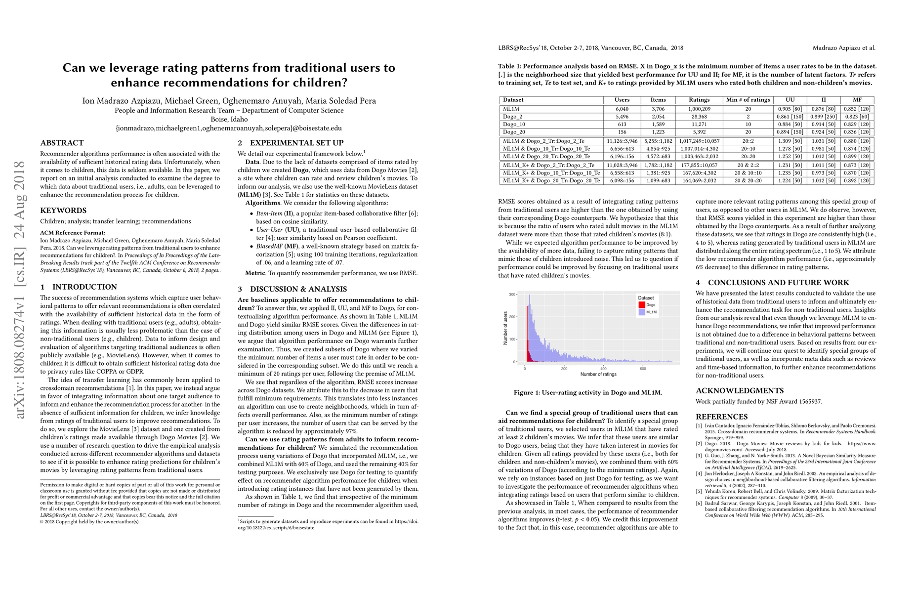 Recommender algorithms performance is often associated with the availability of sufficient historical rating data. Unfortunately, when it comes to children, this data is seldom available. In this paper, we report on an initial analysis conducted to examine the degree to which data about traditional users, i.e., adults, can be leveraged to enhance the recommendation process for children.