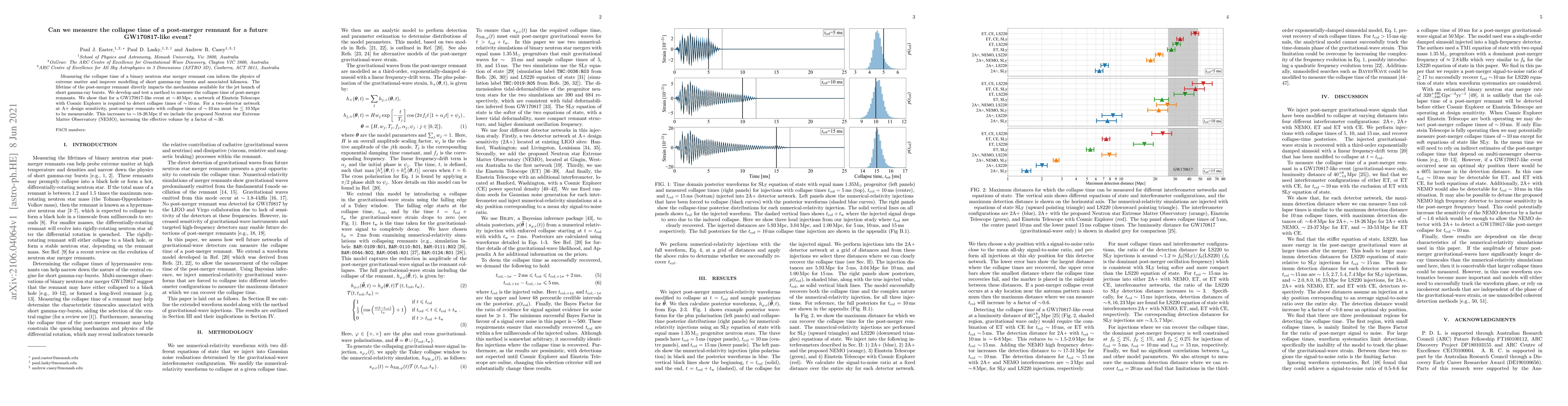 This paper develops a method to measure the collapse time of binary neutron star merger remnants, crucial for understanding extreme matter physics and short gamma-ray bursts. It concludes that a network of advanced gravitational wave detectors, including the Einstein Telescope and Cosmic Explorer, is necessary to detect these collapse times for events similar to GW170817.