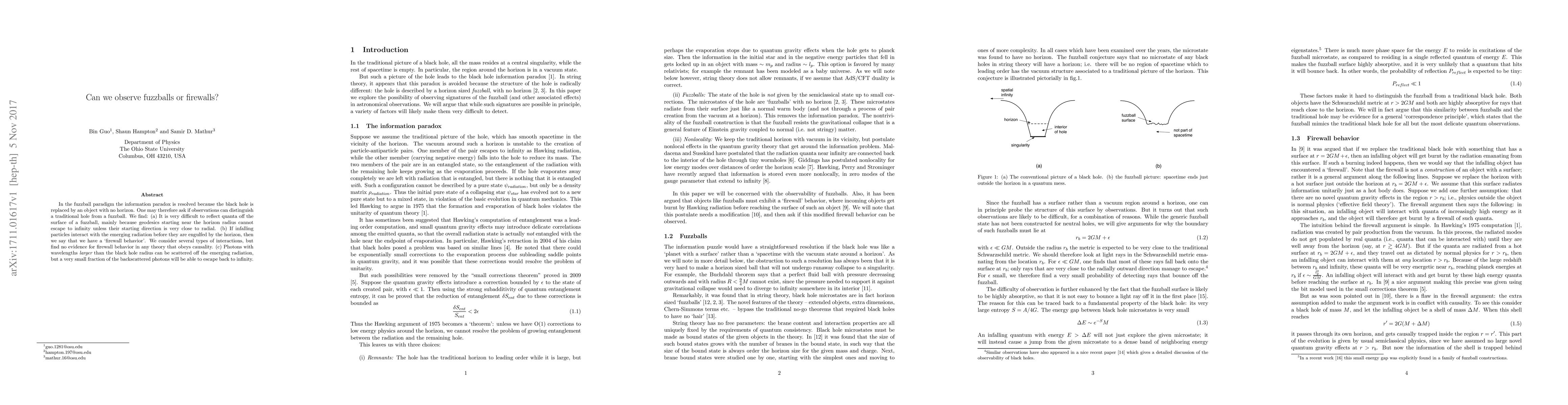 Researchers investigated whether it's possible to distinguish between a traditional black hole and a fuzzball, finding that infalling particles don't exhibit 'firewall behavior' in any theory obeying causality, but can scatter off emerging radiation with some escaping back to infinity.