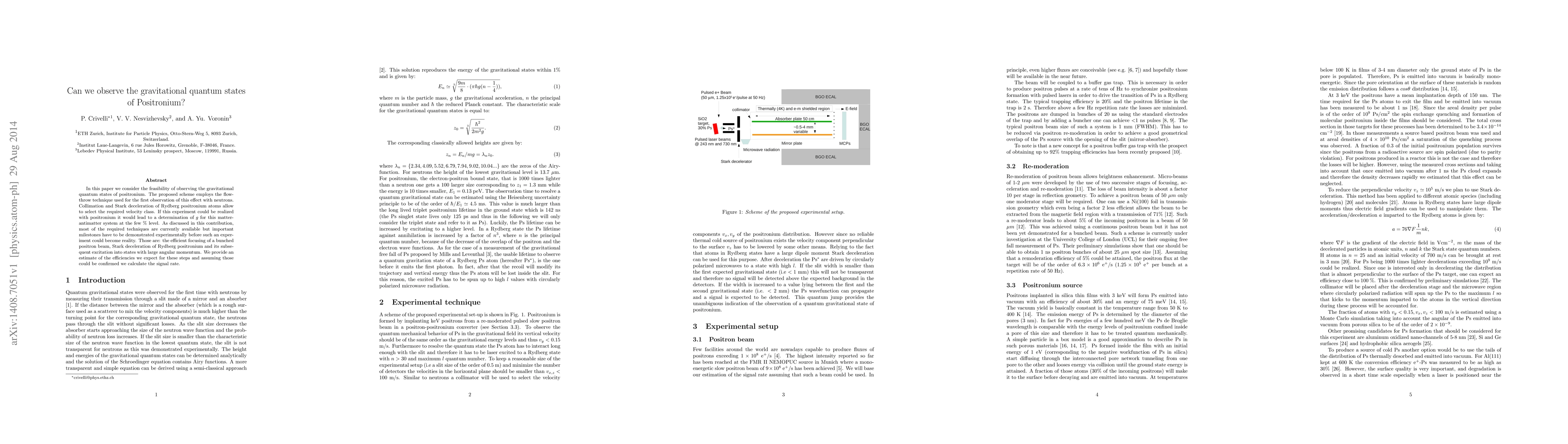 In this paper we consider the feasibility of observing the gravitational quantum states of positronium. The proposed scheme employs the flow-throw technique used for the first observation of this effect with neutrons. Collimation and Stark deceleration of Rydberg positronium atoms allow to select the required velocity class. If this experiment could be realized with positronium it would lead to a determination of g for this matter-antimatter system at the few % level. As discussed in this contribution, most of the required techniques are currently available but important milestones have to be demonstrated experimentally before such an experiment could become reality. Those are: the efficient focusing of a bunched positron beam, Stark deceleration of Rydberg positronium and its subsequent excitation into states with large angular momentum. We provide an estimate of the efficiencies we expect for these steps and assuming those could be confirmed we calculate the signal rate.