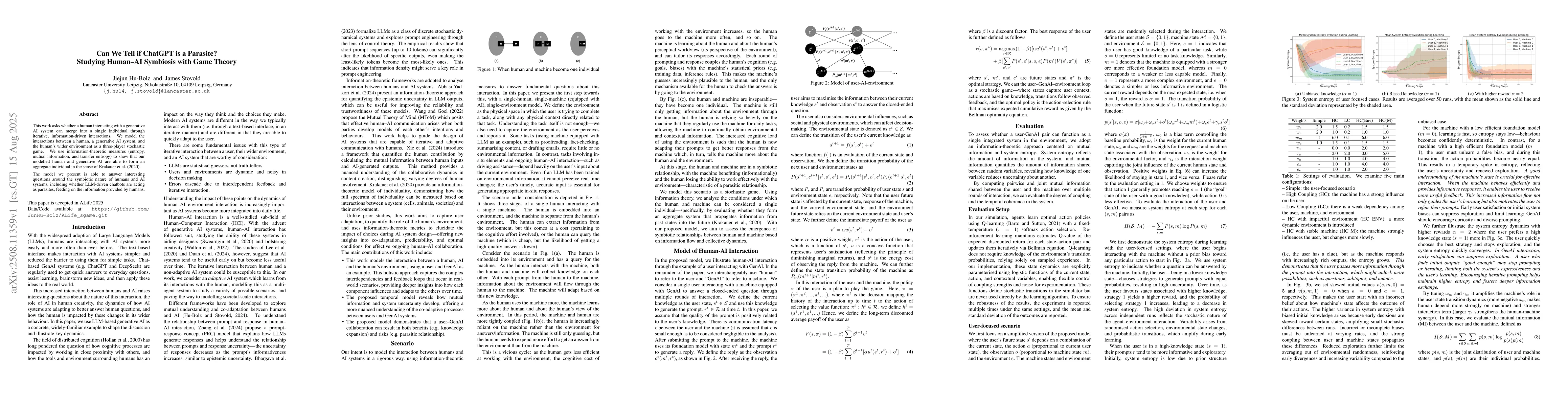 This work asks whether a human interacting with a generative AI system can merge into a single individual through iterative, information-driven interactions. We model the interactions between a human, a generative AI system, and the human's wider environment as a three-player stochastic game. We use information-theoretic measures (entropy, mutual information, and transfer entropy) to show that our modelled human and generative AI are able to form an aggregate individual in the sense of Krakauer et al. (2020). The model we present is able to answer interesting questions around the symbiotic nature of humans and AI systems, including whether LLM-driven chatbots are acting as parasites, feeding on the information provided by humans.