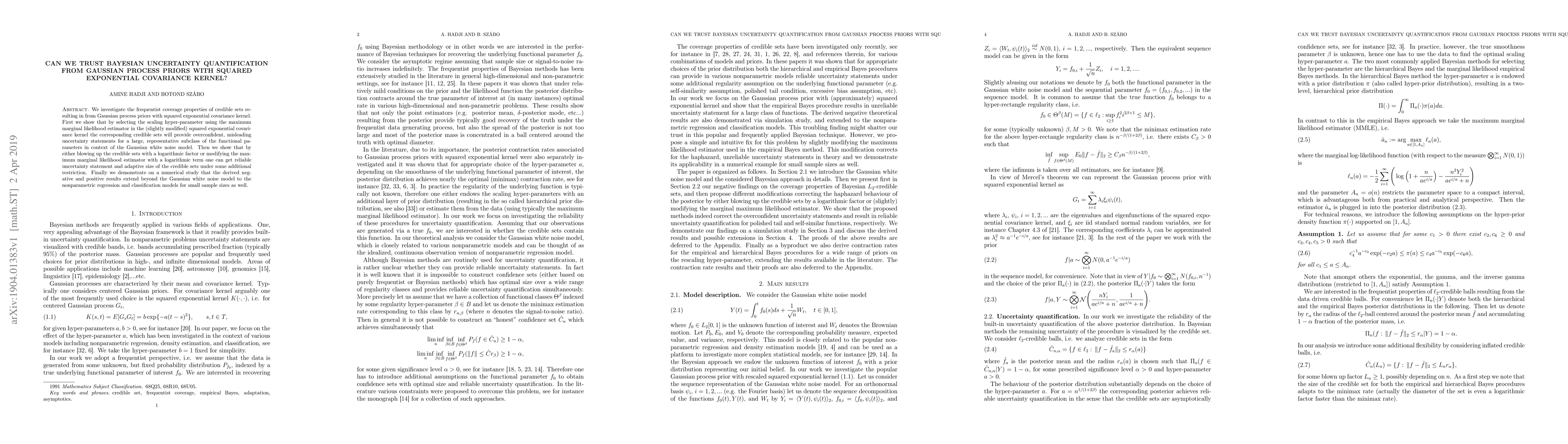 We investigate the frequentist coverage properties of credible sets resulting in from Gaussian process priors with squared exponential covariance kernel. First we show that by selecting the scaling hyper-parameter using the maximum marginal likelihood estimator in the (slightly modified) squared exponential covariance kernel the corresponding credible sets will provide overconfident, misleading uncertainty statements for a large, representative subclass of the functional parameters in context of the Gaussian white noise model. Then we show that by either blowing up the credible sets with a logarithmic factor or modifying the maximum marginal likelihood estimator with a logarithmic term one can get reliable uncertainty statement and adaptive size of the credible sets under some additional restriction. Finally we demonstrate on a numerical study that the derived negative and positive results extend beyond the Gaussian white noise model to the nonparametric regression and classification models for small sample sizes as well.