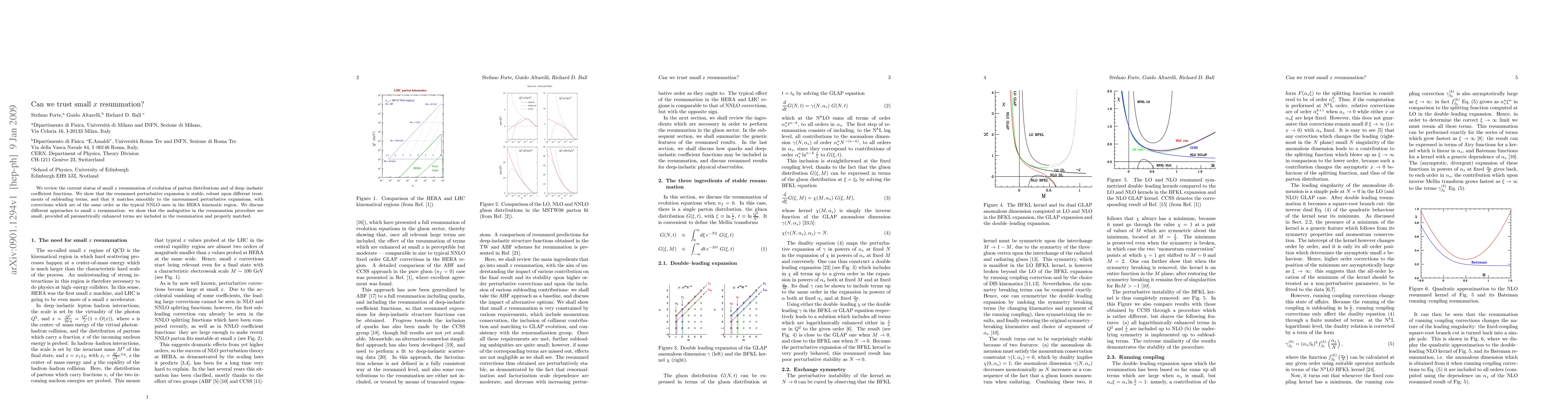 We review the current status of small x resummation of evolution of parton distributions and of deep-inelastic coefficient functions. We show that the resummed perturbative expansion is stable, robust upon different treatments of subleading terms, and that it matches smoothly to the unresummed perturbative expansions, with corrections which are of the same order as the typical NNLO ones in the HERA kinematic region. We discuss different approaches to small x resummation: we show that the ambiguities in the resummation procedure are small, provided all parametrically enhanced terms are included in the resummation and properly matched.