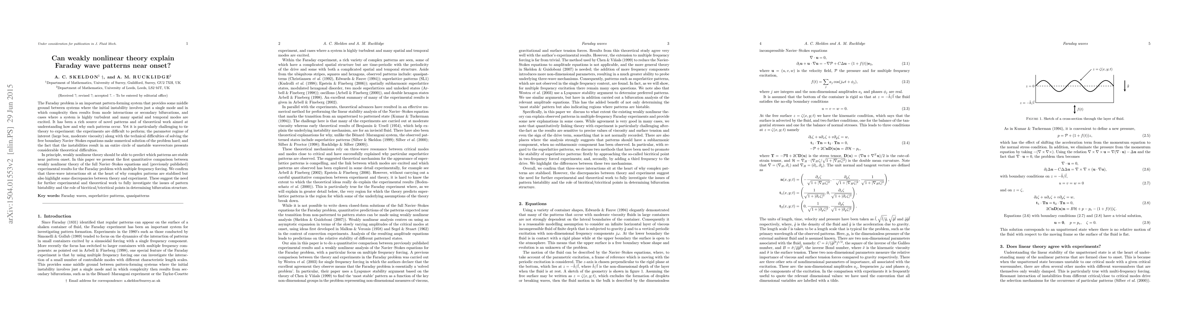 The Faraday problem is an important pattern-forming system that provides some middle ground between systems where the initial instability involves just a single mode and in which complexity then results from mode interactions or secondary bifurcations, and cases where a system is highly turbulent and many spatial and temporal modes are excited. It has been a rich source of novel patterns and of theoretical work aimed at understanding how and why such patterns occur. Yet it is particularly challenging to tie theory to experiment: the experiments are difficult to perform; the parameter regime of interest (large box, moderate viscosity) along with the technical difficulties of solving the free boundary Navier--Stokes equations make numerical solution of the problem hard; and the fact that the instabilities result in an entire circle of unstable wavevectors presents considerable theoretical difficulties. In principle, weakly nonlinear theory should be able to predict which patterns are stable near pattern onset. In this paper we present the first quantitative comparison between weakly nonlinear theory of the full Navier-Stokes equations and (previously published) experimental results for the Faraday problem with multiple frequency forcing. We confirm that three-wave interactions sit at the heart of why complex patterns are stablised but also highlight some discrepancies between theory and experiment. These suggest the need for further experimental and theoretical work to fully investigate the issues of pattern bistability and the role of bicritical/tricritical points in determining bifurcation structure.
