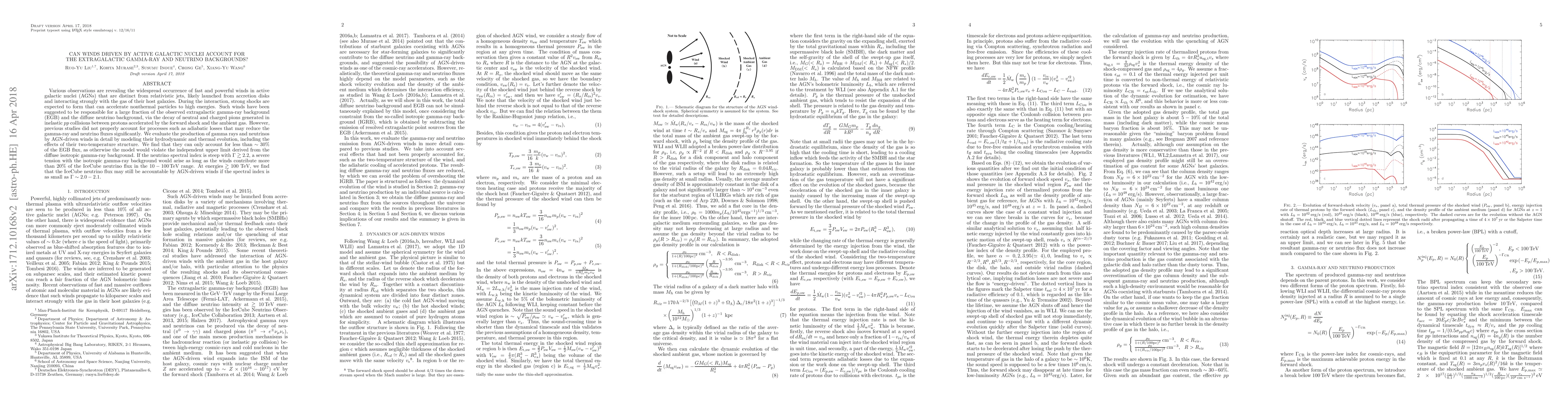This paper investigates whether winds from active galactic nuclei (AGNs) can account for extragalactic gamma-ray and neutrino backgrounds, finding they contribute less than 30% to the gamma-ray background due to adiabatic losses. At higher energies, AGN winds may still explain some IceCube neutrino flux if the spectral index is around 2.0-2.1.