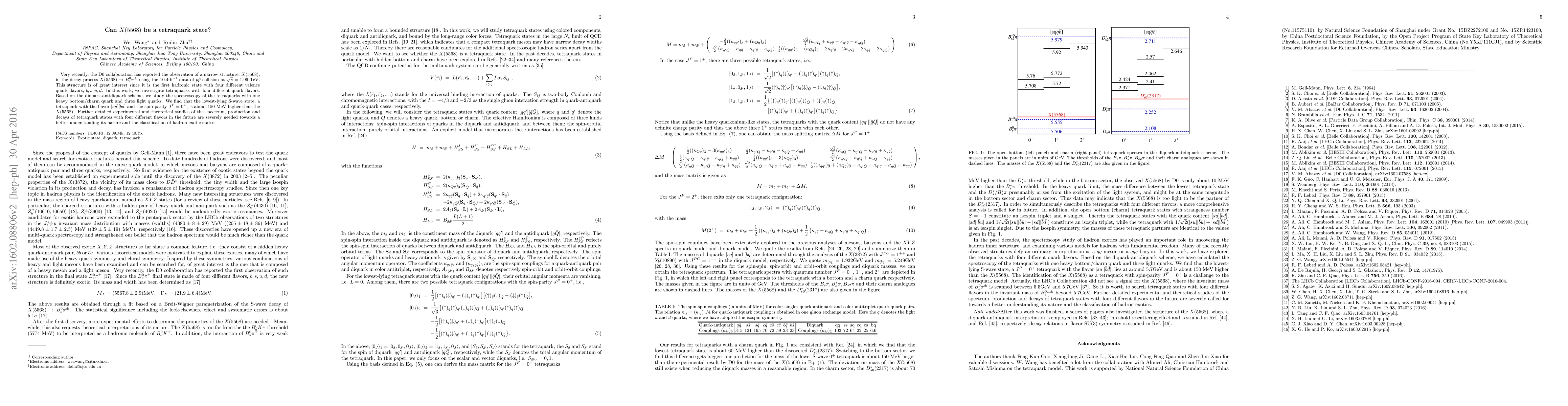 The D0 collaboration has observed a narrow structure $X(5568)$ in $B^0_s\pi^\pm$ decays, prompting investigation into whether it could be a tetraquark state composed of four different quark flavors. Theoretical analysis suggests that the lowest-lying tetraquark state with the flavor $[su][\bar b\bar d ]$ and spin-parity $J^P=0^+$ is not a match for $X(5568)$, indicating further study is needed to classify its nature.