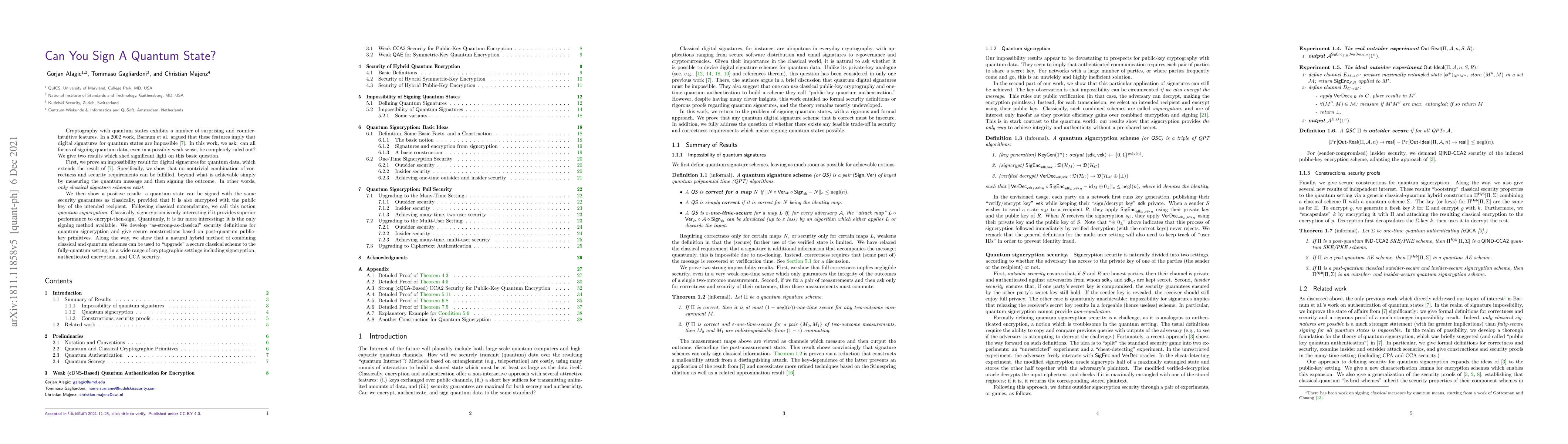 Cryptography with quantum states exhibits a number of surprising and counterintuitive features. In a 2002 work, Barnum et al. argue that these features imply that digital signatures for quantum states are impossible (Barnum et al., FOCS 2002). In this work, we ask: can all forms of signing quantum data, even in a possibly weak sense, be completely ruled out? We give two results which shed significant light on this basic question. First, we prove an impossibility result for digital signatures for quantum data, which extends the result of Barnum et al. Specifically, we show that no nontrivial combination of correctness and security requirements can be fulfilled, beyond what is achievable simply by measuring the quantum message and then signing the outcome. In other words, only classical signature schemes exist. We then show a positive result: a quantum state can be signed with the same security guarantees as classically, provided that it is also encrypted with the public key of the intended recipient. Following classical nomenclature, we call this notion quantum signcryption. Classically, signcryption is only interesting if it provides superior performance to encypt-then-sign. Quantumly, it is far more interesting: it is the only signing method available. We develop "as-strong-as-classical" security definitions for quantum signcryption and give secure constructions based on post-quantum public-key primitives. Along the way, we show that a natural hybrid method of combining classical and quantum schemes can be used to "upgrade" a secure classical scheme to the fully-quantum setting, in a wide range of cryptographic settings including signcryption, authenticated encryption, and CCA security.