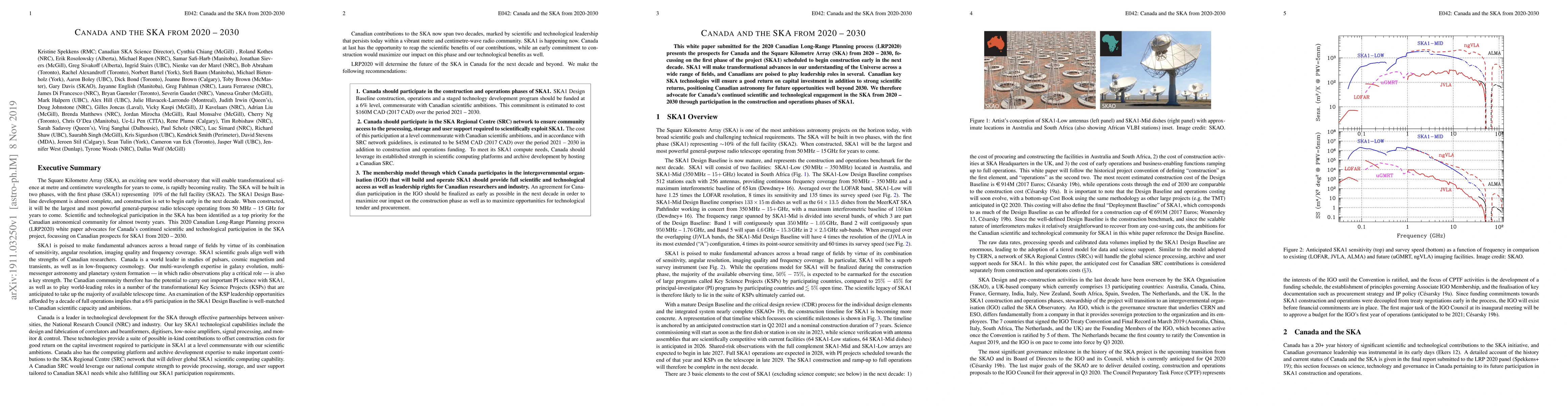 This white paper advocates for Canada's active participation in the SKA1 project from 2020-2030, highlighting the potential for significant scientific and technological advancements, and the strong return on investment through leadership roles in key technologies.