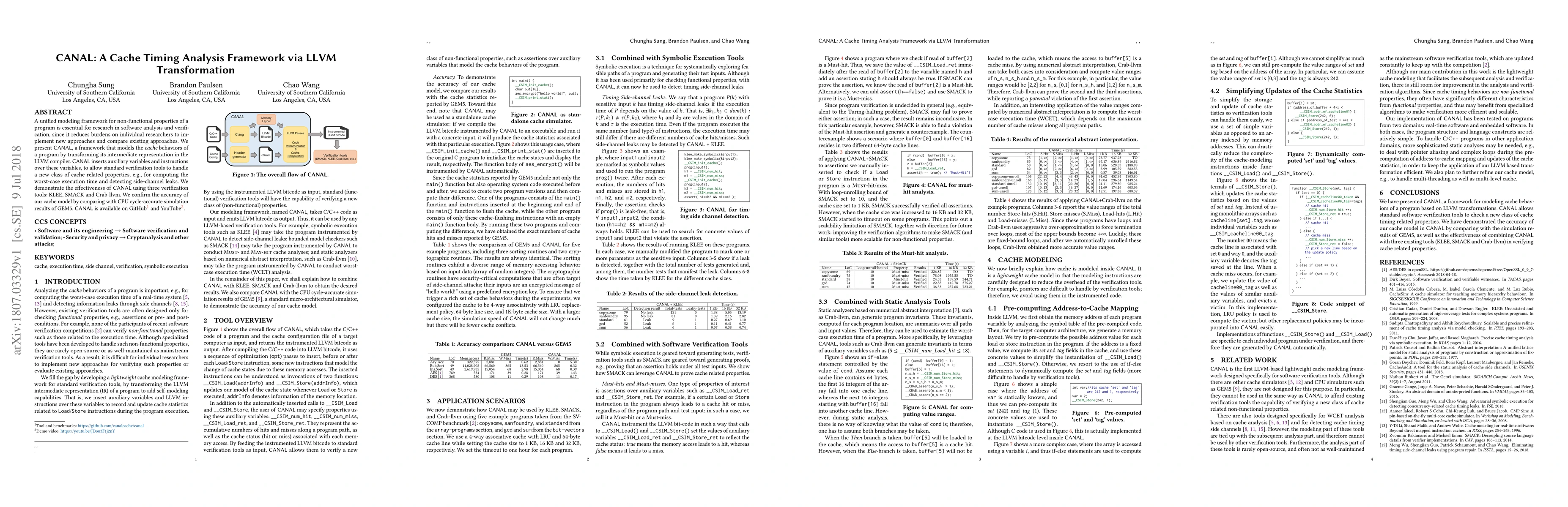 CANAL, a framework, models cache behaviors in programs using LLVM transformation, enabling verification of cache-related properties such as worst-case execution time.