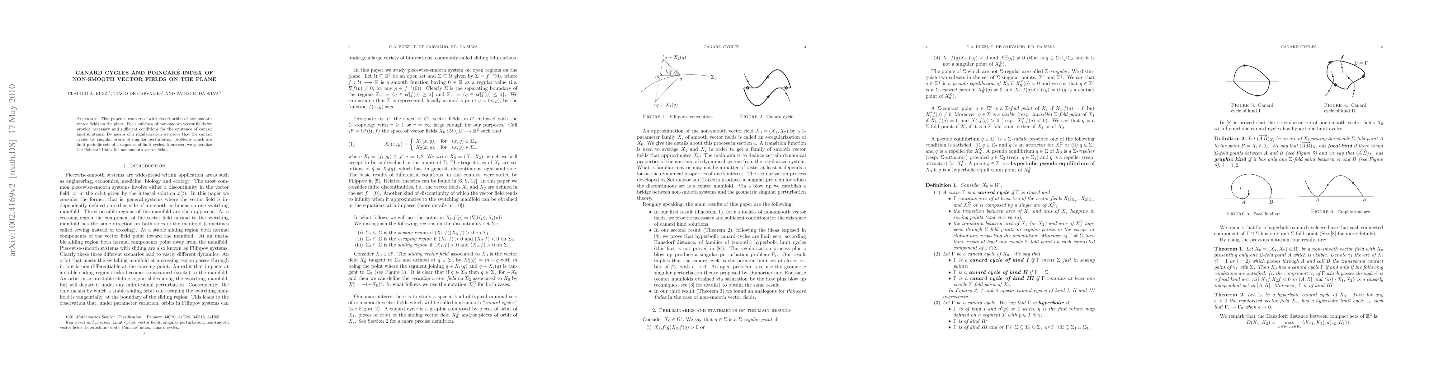 The paper introduces a method to analyze non-smooth vector fields using regularization and extends the Poincaré Index concept to these fields, providing a framework for understanding canard cycles in singular perturbation problems.