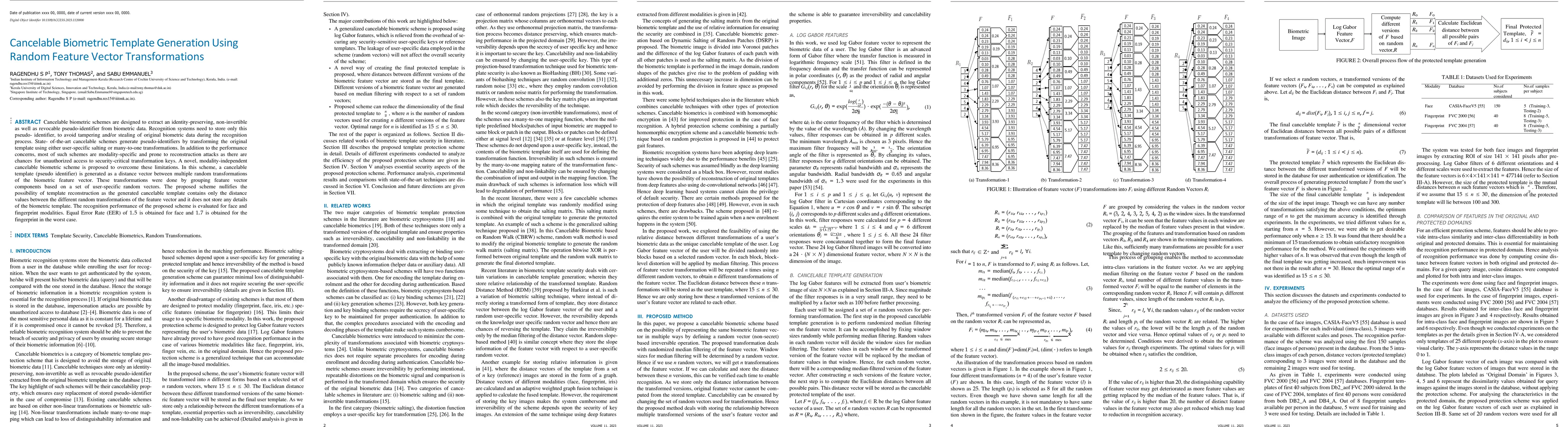 This paper proposes a novel, modality-independent cancelable biometric scheme that generates a pseudo-identifier by calculating distance vectors from multiple random transformations of the biometric feature vector. The scheme enhances security by avoiding storage of biometric details and mitigating reconstruction attacks.