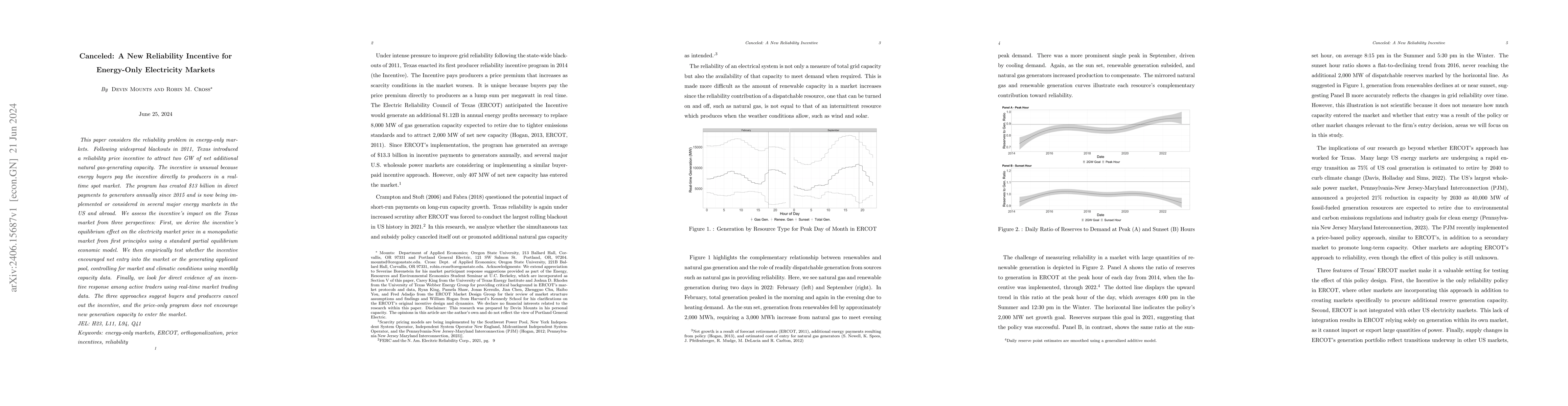 This paper evaluates a Texas-introduced reliability incentive program, finding that it has not attracted additional natural gas-generating capacity and cancels out in its equilibrium effect on electricity prices, as suggested by theoretical, empirical, and trading data analyses.