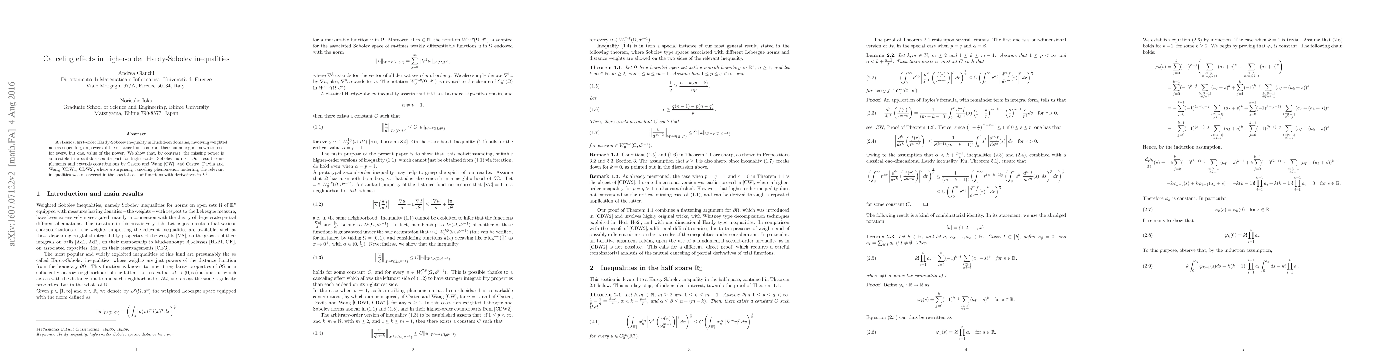 A classical first-order Hardy-Sobolev inequality in Euclidean domains, involving weighted norms depending on powers of the distance function from their boundary, is known to hold for every, but one, value of the power. We show that, by contrast, the missing power is admissible in a suitable counterpart for higher-order Sobolev norms. Our result complements and extends contributions by Castro and Wang [CW], and Castro, D\'avila and Wang [CDW1, CDW2], where a surprising canceling phenomenon underling the relevant inequalities was discovered in the special case of functions with derivatives in $L^1$.