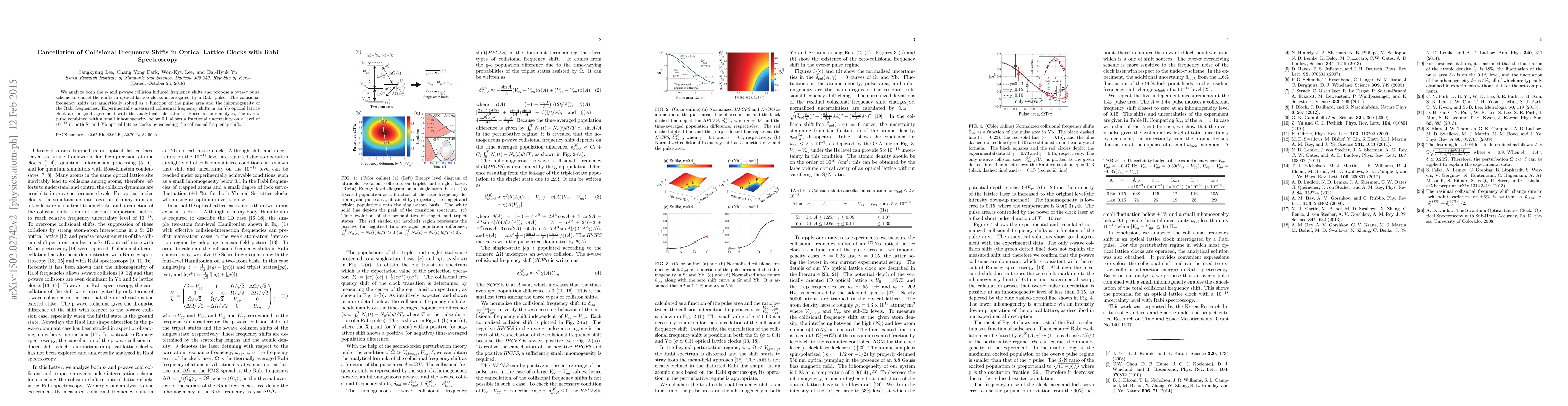This paper proposes an over-$\pi$ pulse scheme to cancel s- and p-wave collisional frequency shifts in optical lattice clocks using Rabi spectroscopy. Experimental results confirm analytical calculations, achieving a fractional uncertainty of $10^{-18}$ in Yb and Sr optical lattice clocks with minimal inhomogeneity.
