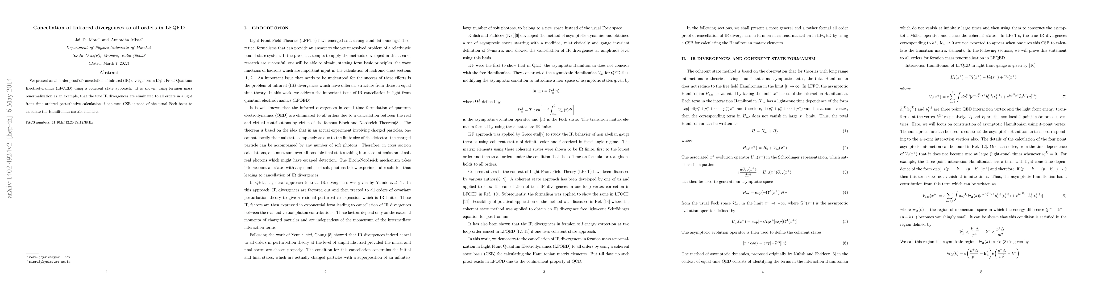 Researchers show that using a coherent state basis eliminates infrared divergences to all orders in light front time ordered perturbation theory, providing an alternative approach to handling true infrared divergences in LFQED.