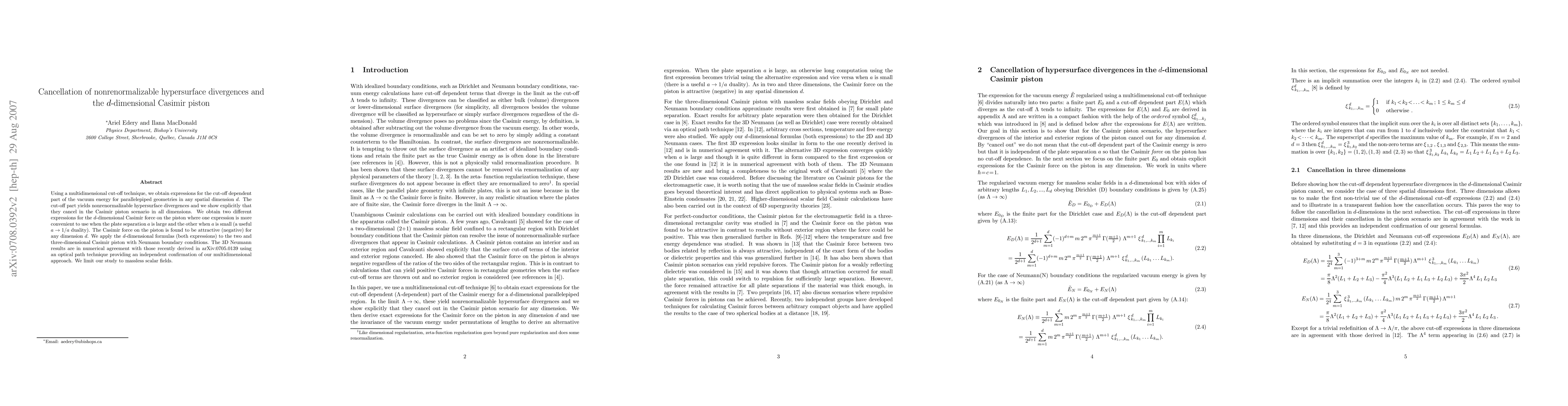 This paper demonstrates the cancellation of nonrenormalizable hypersurface divergences in the vacuum energy of parallelepiped geometries using a multidimensional cut-off technique, revealing an attractive Casimir force on a piston in any spatial dimension. It provides two expressions for the d-dimensional Casimir force, highlighting a useful duality between large and small plate separations.