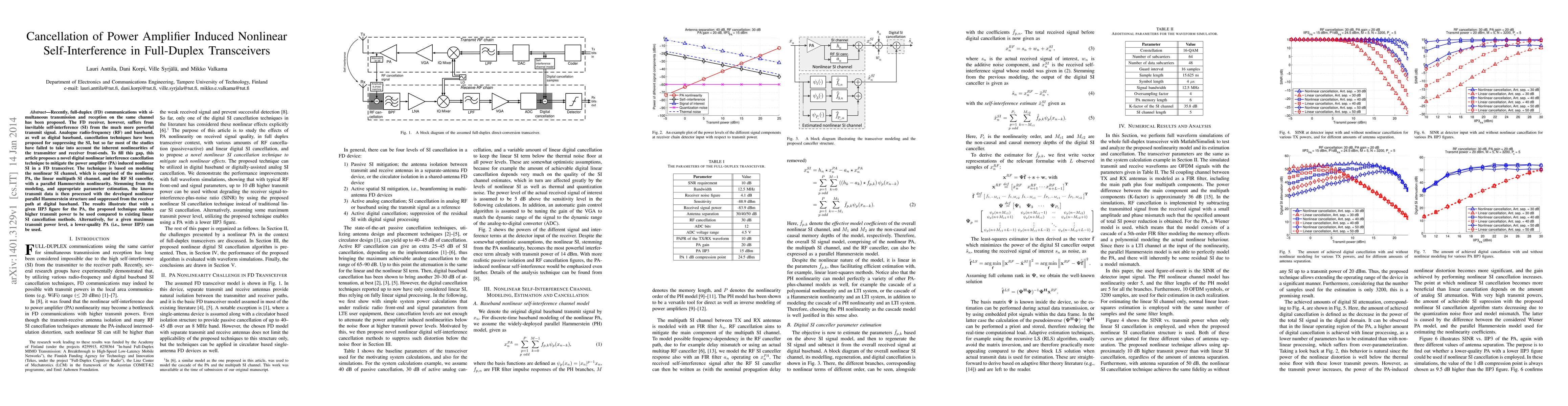A new digital nonlinear interference cancellation technique is proposed to mitigate power amplifier-induced self-interference in full-duplex transceivers, enabling higher transmit power or lower-quality amplifiers with the same performance.
