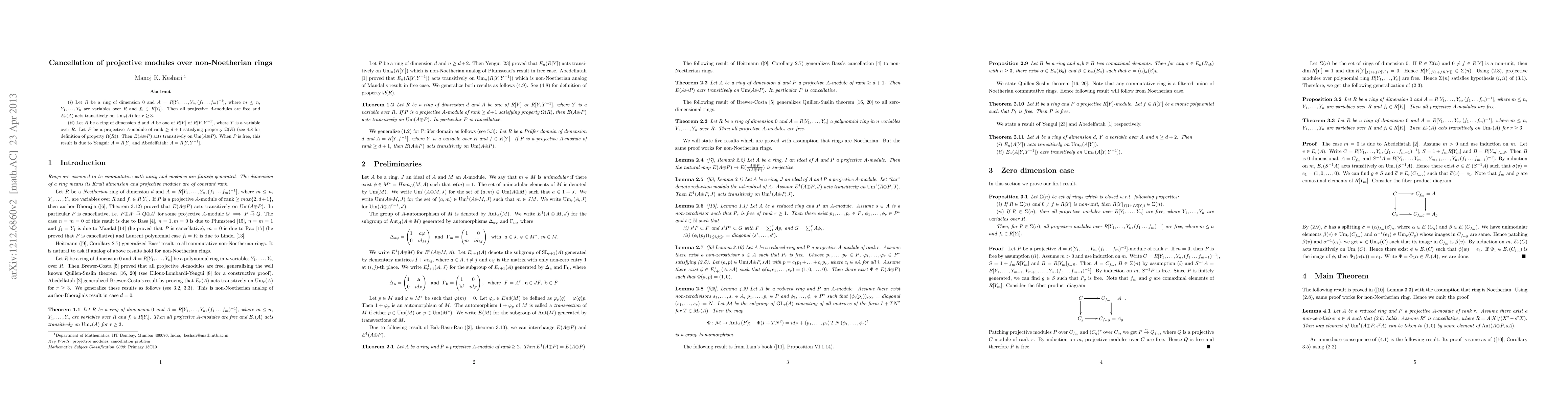 Let R be a ring of dimension d and A be one of R[Y] or R[Y,Y^{-1}]. If P is a projective A-module of rank \geq d+1 satisfying some condition, then we show that E(A\oplus P) acts transitively on Um(A\oplus P). When P is free, this result is due to Yengui (when A=R[Y]) and Abedelfatah (when A=R[Y,Y^{-1}]).