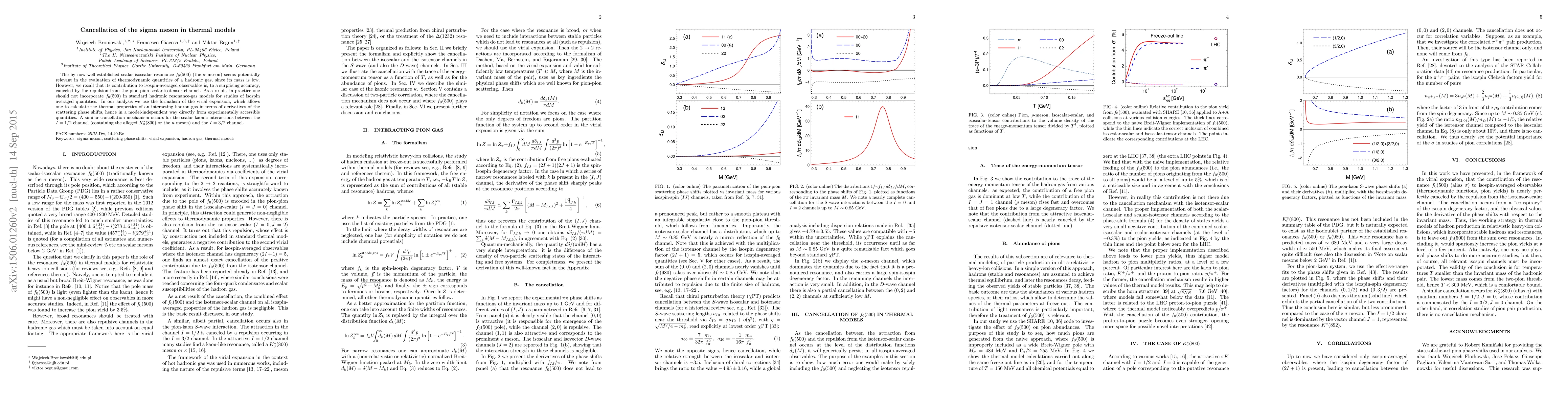 The sigma meson's contribution to hadronic resonance-gas models is canceled due to repulsion from other channels, making it irrelevant for studying isospin-averaged quantities. The virial expansion formalism allows direct calculation of thermal properties from experimentally accessible quantities.