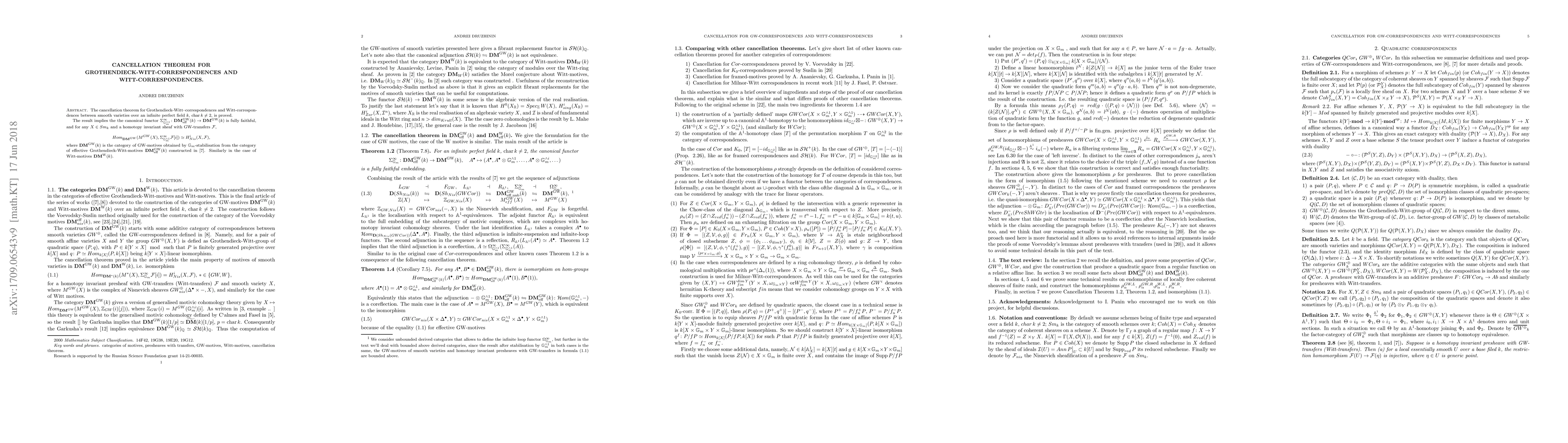 The paper introduces and proves a cancellation theorem for effective and non-effective Grothendieck-Witt correspondences, establishing a fundamental relationship between hom-sets in these categories.