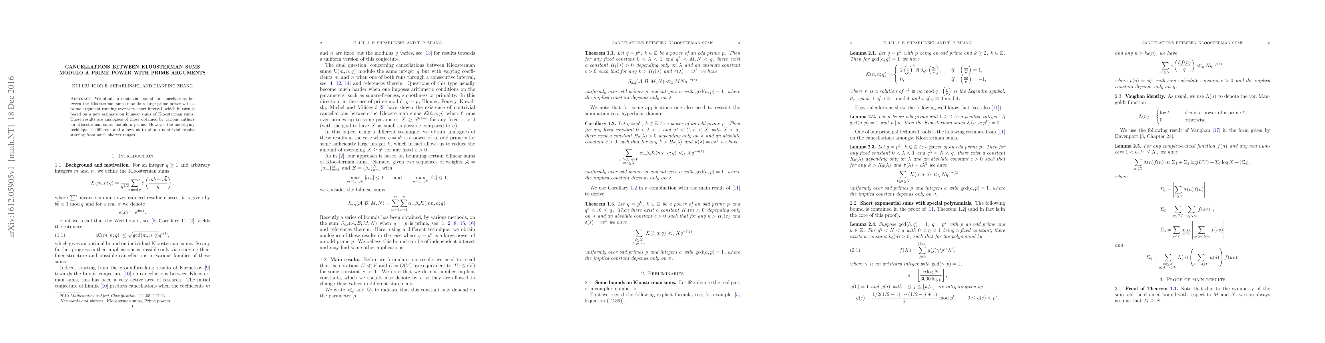 This paper provides a nontrivial bound for cancellations in Kloosterman sums modulo large prime powers, extending analogous results for prime moduli, through a novel estimate on bilinear sums, allowing effective results from shorter intervals.